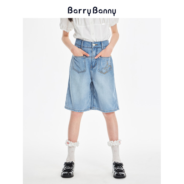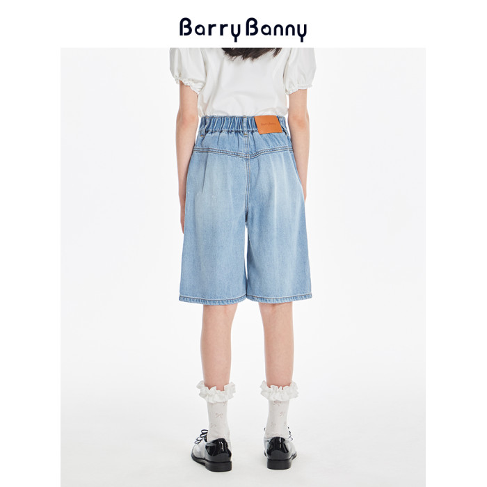 BarryBanny女童萊賽爾牛仔短褲2025夏季兒童濶腿褲寬松五分褲子