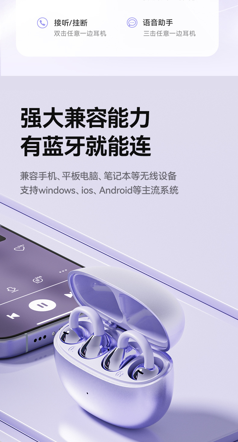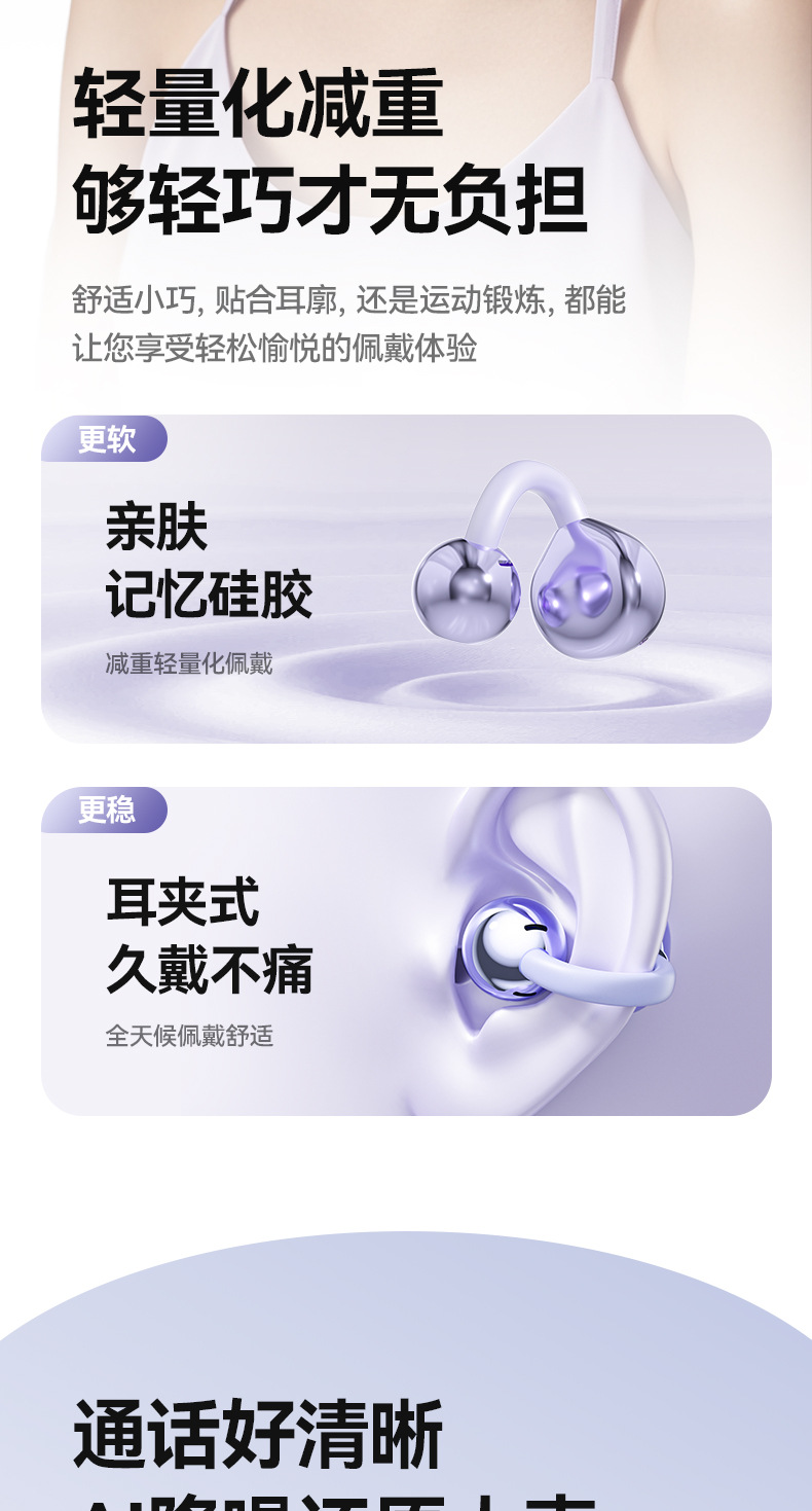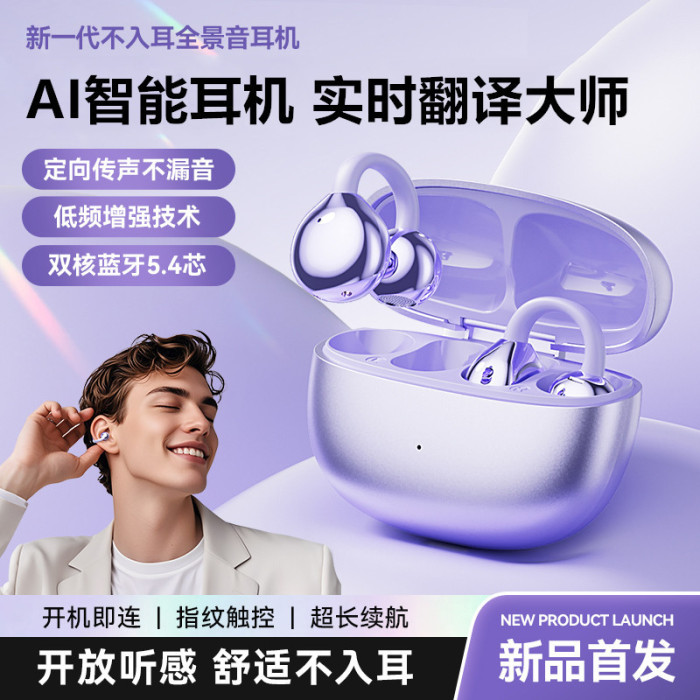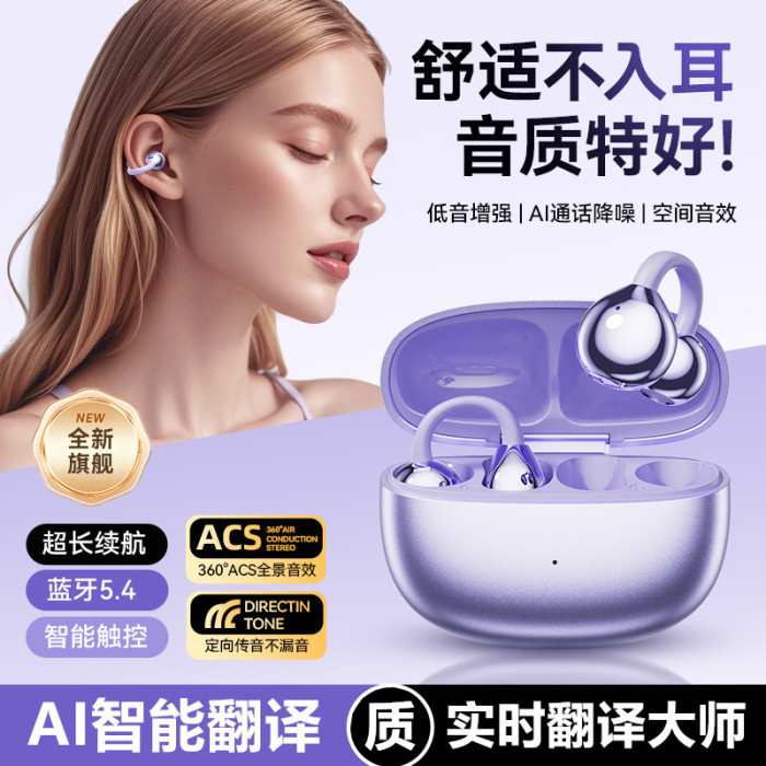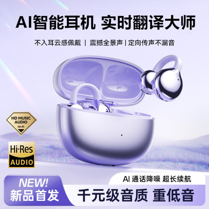 無線耳夾藍牙耳機AI翻譯高顔值金標不入耳運動健身聽歌遊戯0延遲