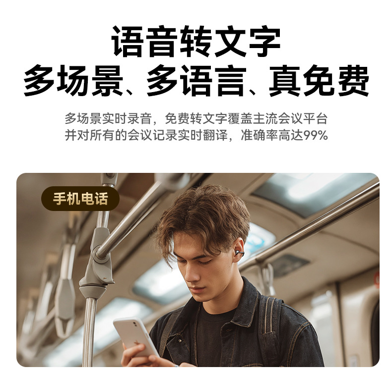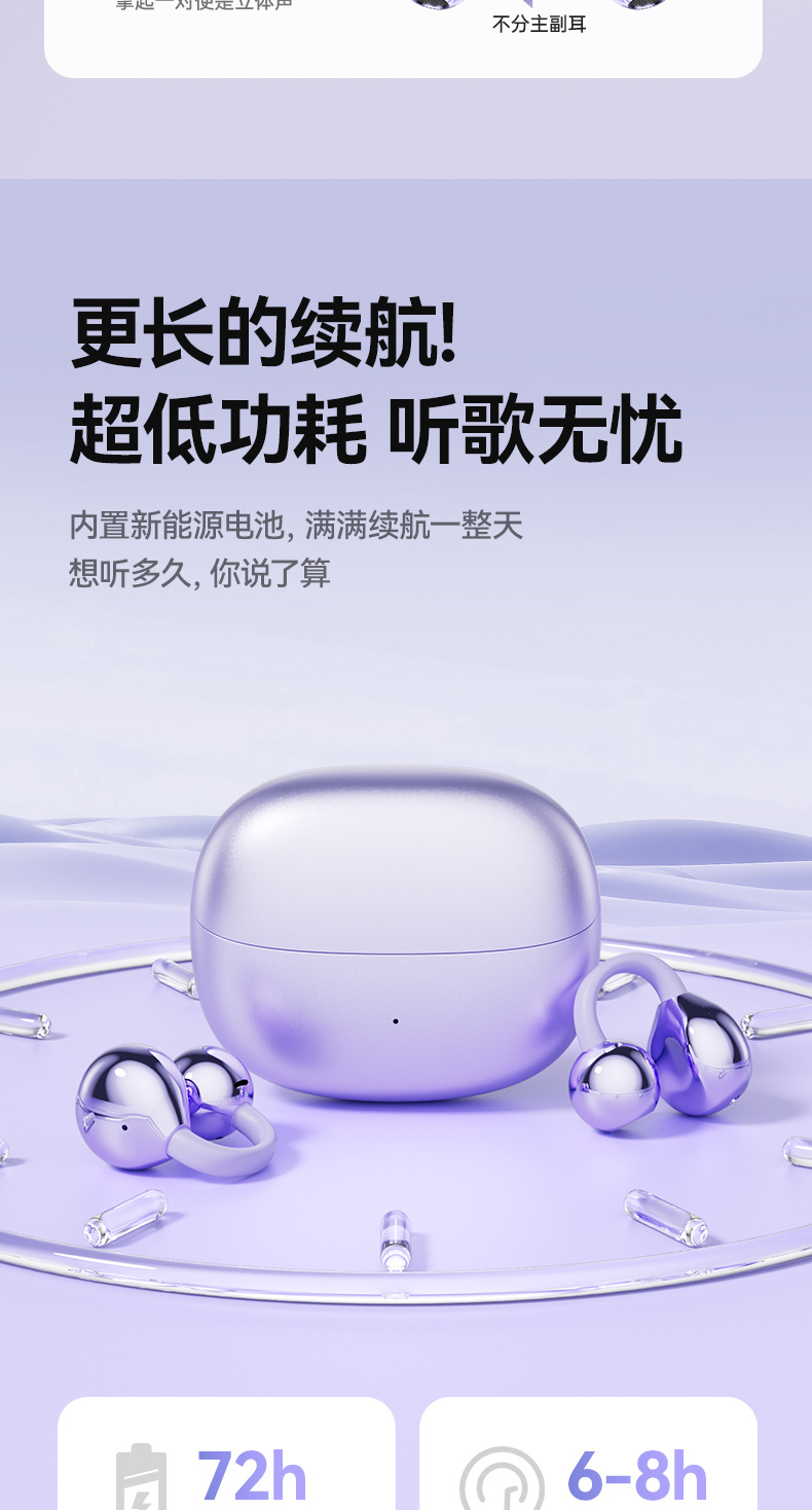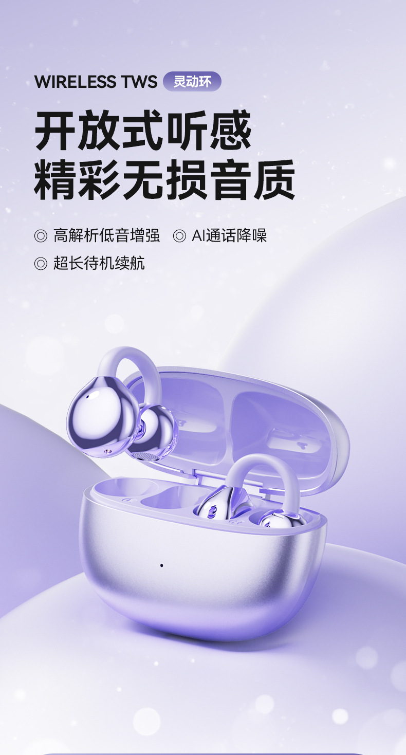 無線耳夾藍牙耳機AI翻譯高顔值金標不入耳運動健身聽歌遊戯0延遲