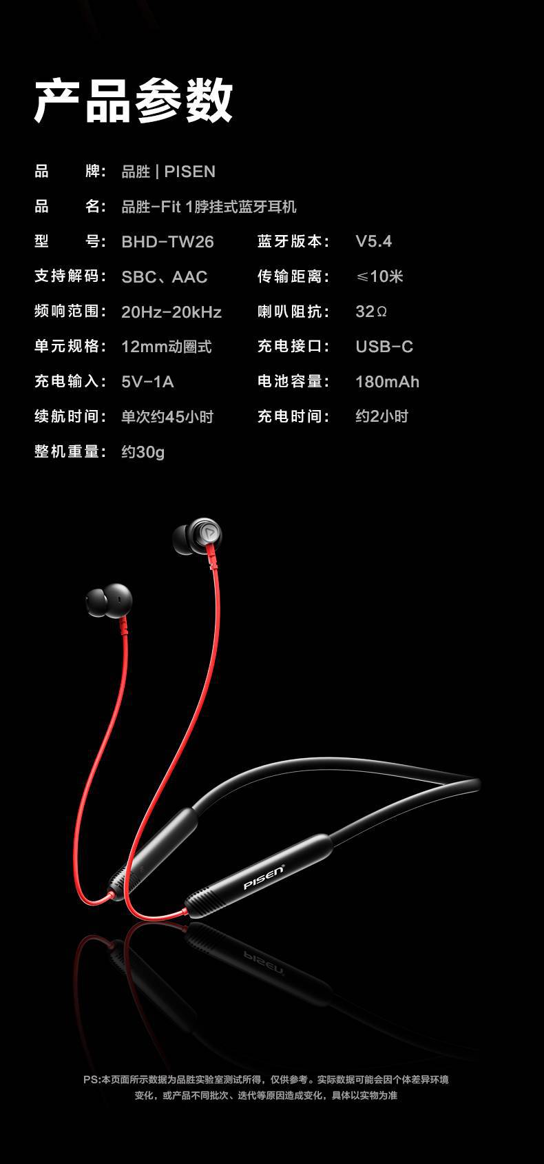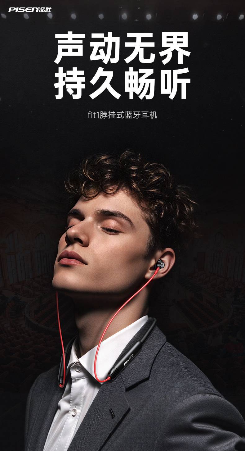 品勝頸脖掛式無線藍牙耳機半入耳式耳塞運動模式降噪切換長40小時