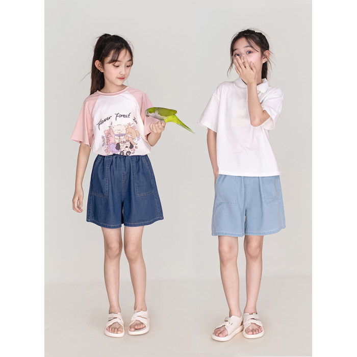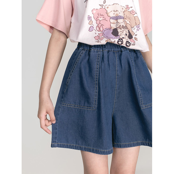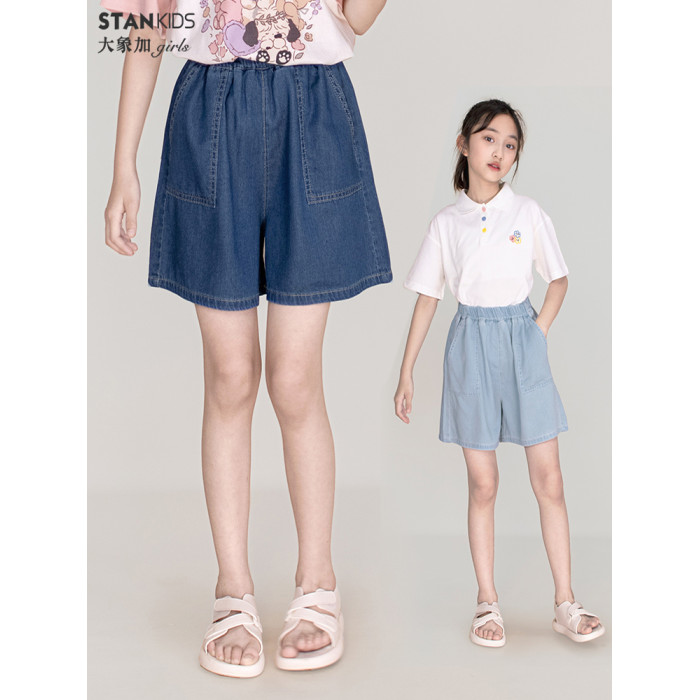 柔軟女童萊賽爾棉感牛仔短褲寬松薄牛仔中褲2025夏款中大童休閒褲