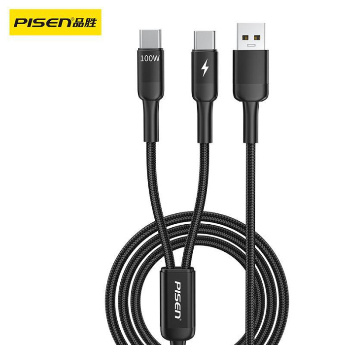 魔幻黑1.2米【USB接口】100W一拖二雙Type-c線