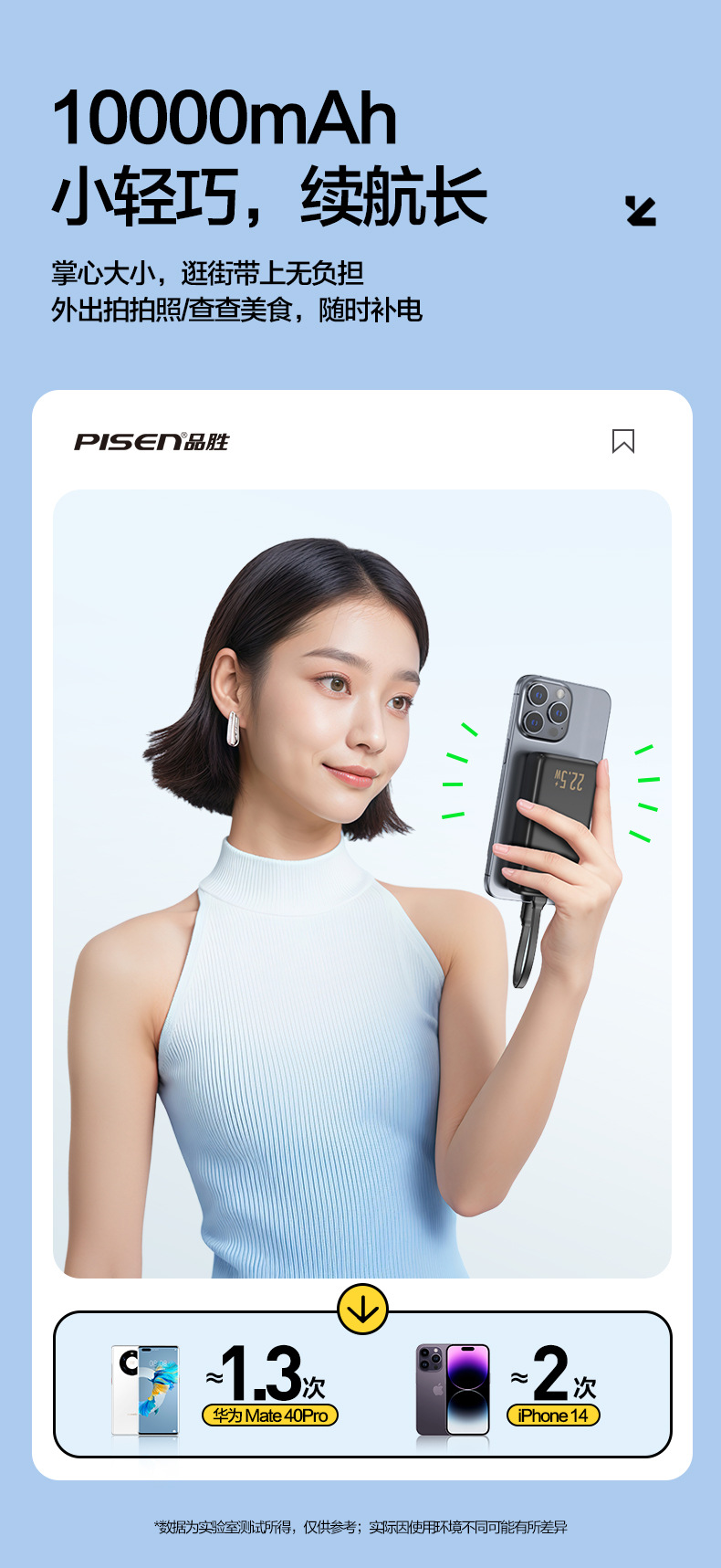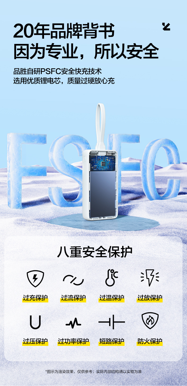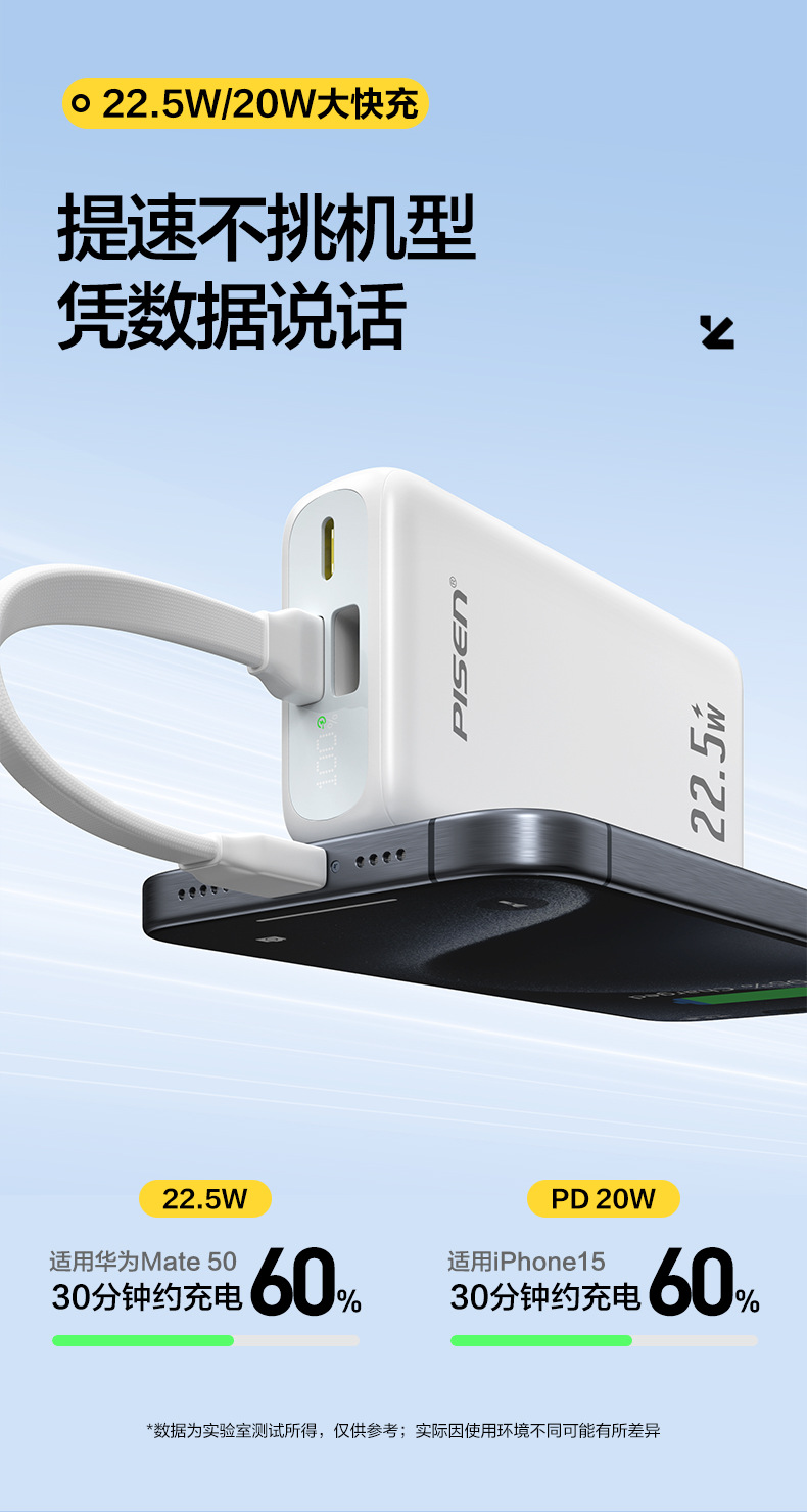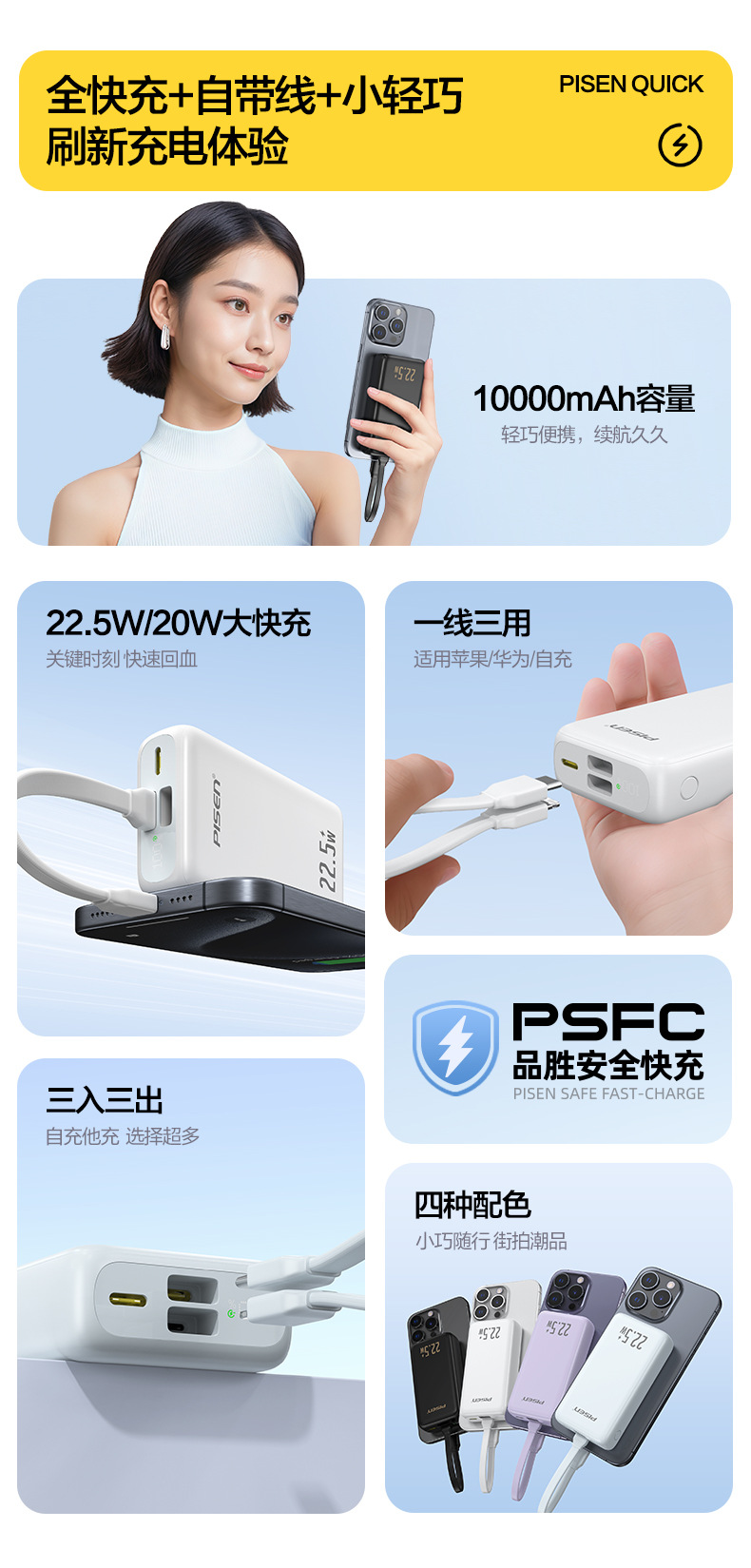 品勝PD22.5W快充充電寶迷你自帶線10000安培大容量行動電源禮品
