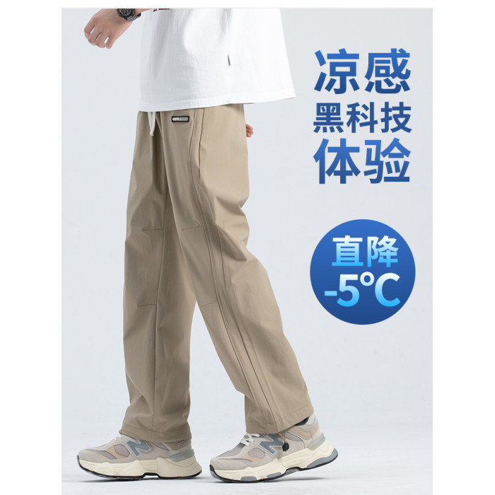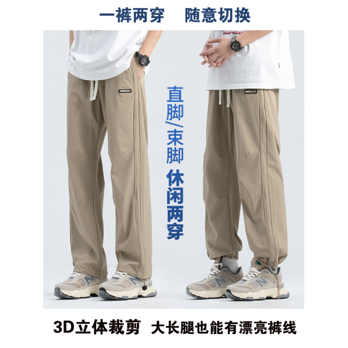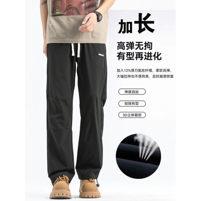 夏季冰絲褲子男士高個子加長薄款運動彈力直筒長褲寬松百搭濶腿褲
