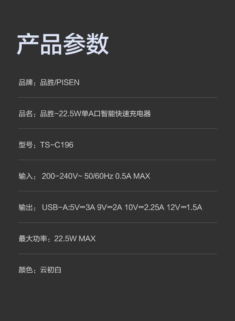 適用型號 套裝【22.5W充電頭】+【1米快充線】【TS-C196/雲初白】