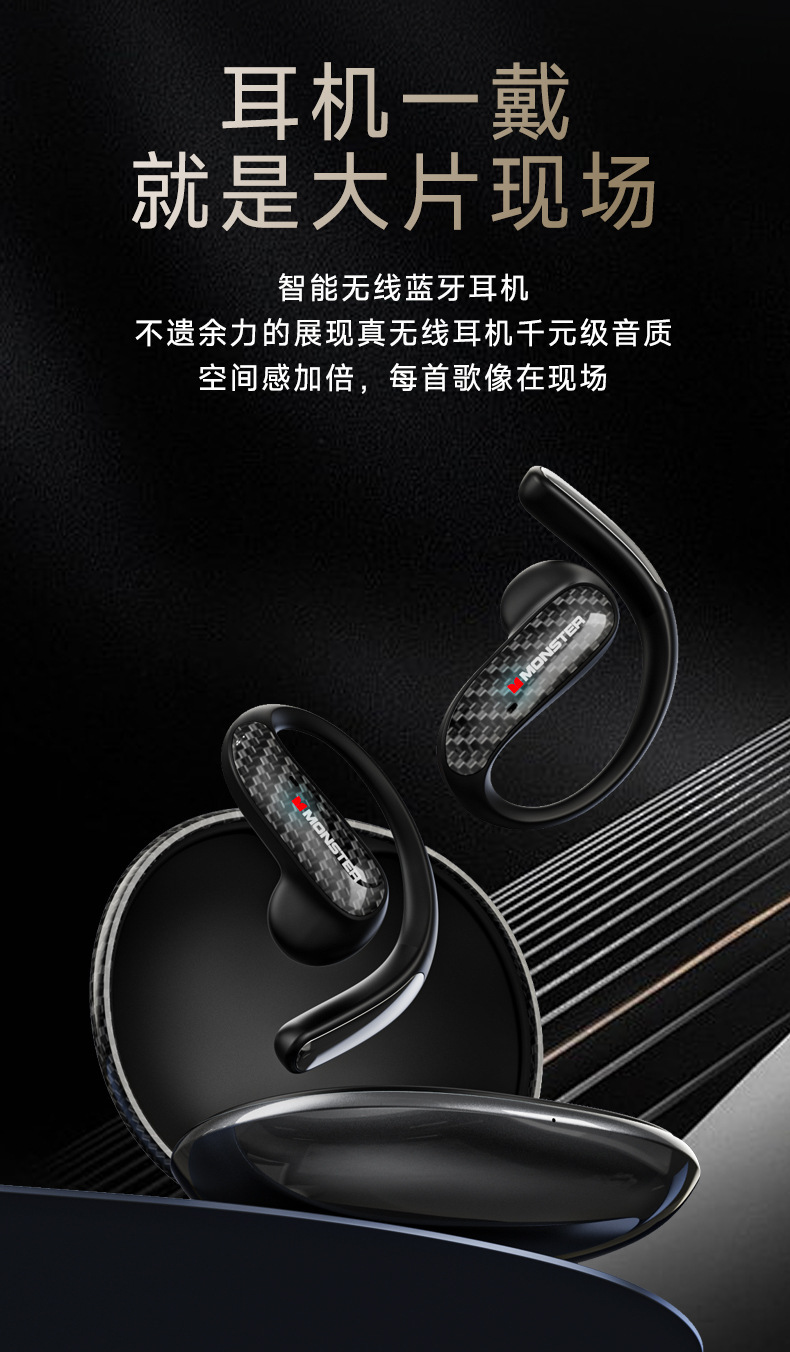 適用於MONST魔生MQ037無線藍牙耳機掛耳式運動降噪不入耳高品質