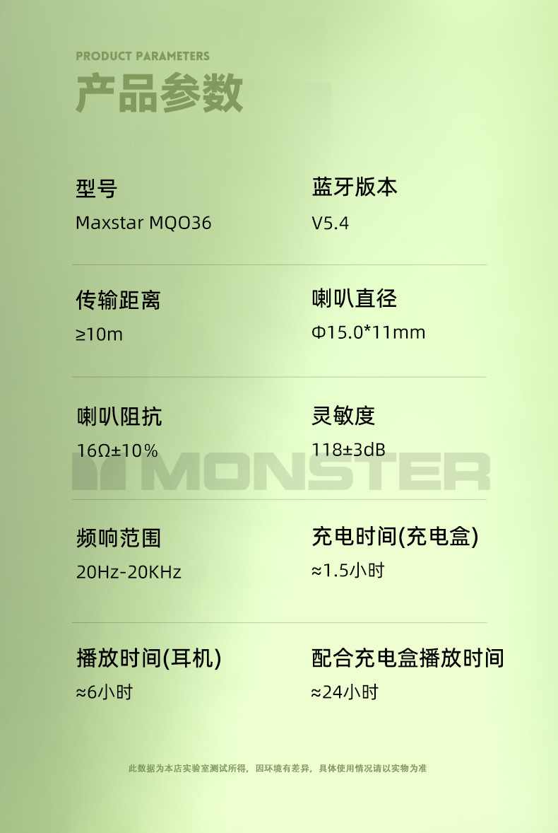 適用於MONST魔生MQ036無線藍牙耳機掛耳式運動降噪不入耳高品質