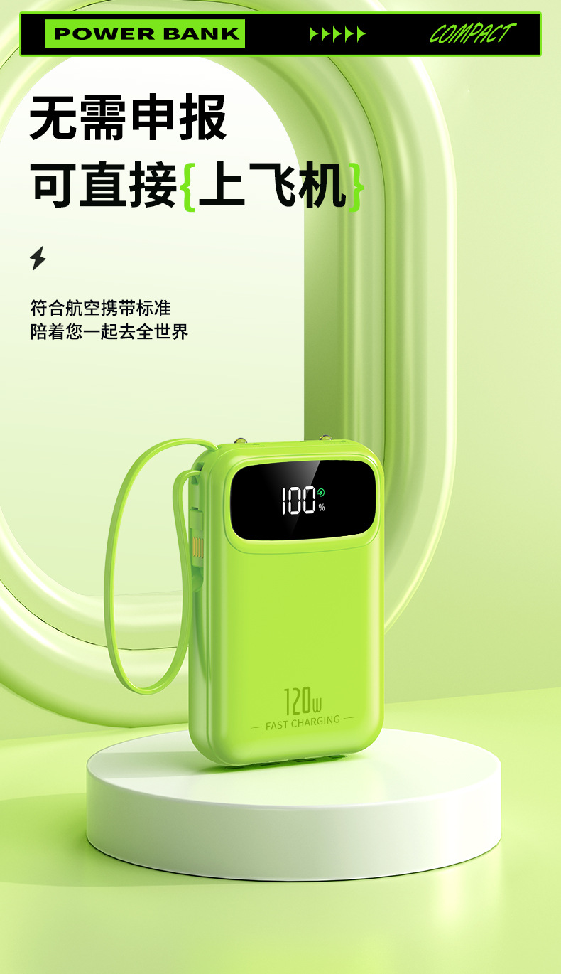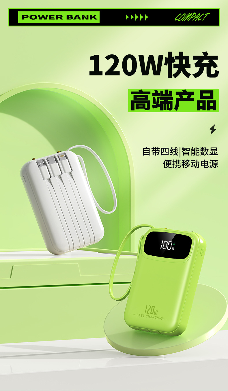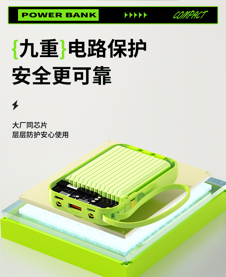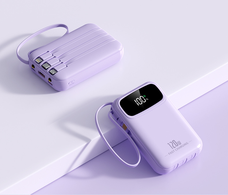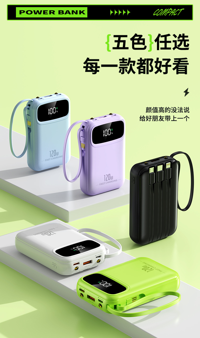 3C國標認証超級快充迷你自帶線充電寶20000安培行動電源