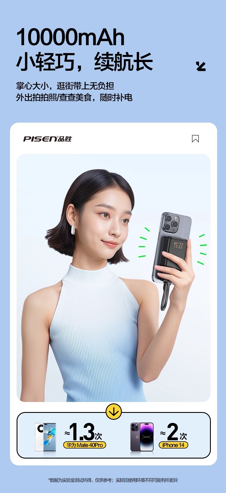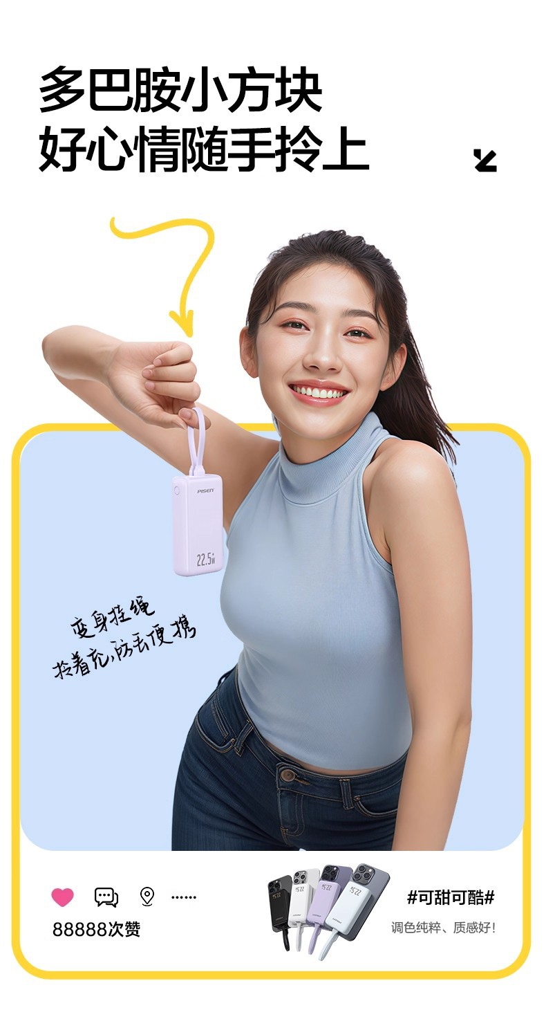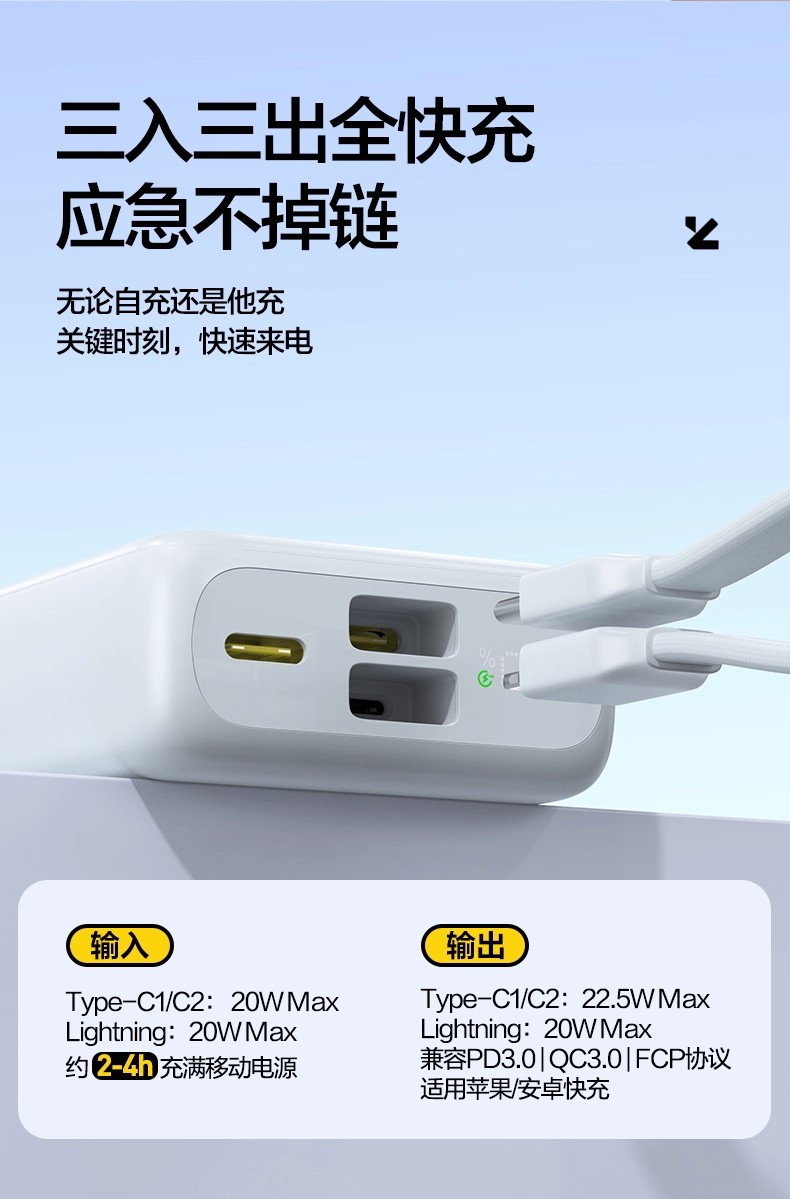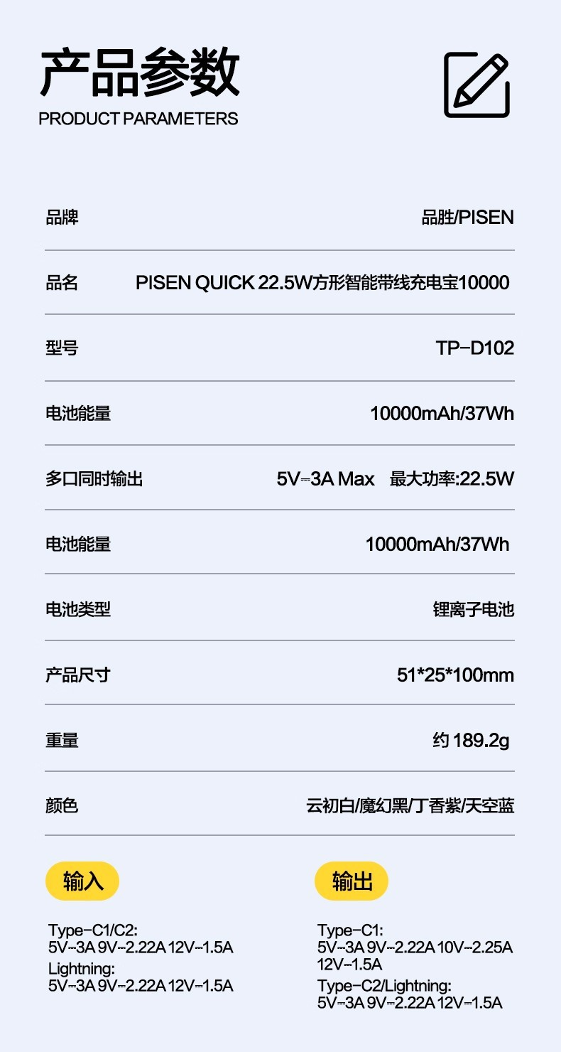 型號 22.5W方形智能帶線充電寶10000(TP-D102