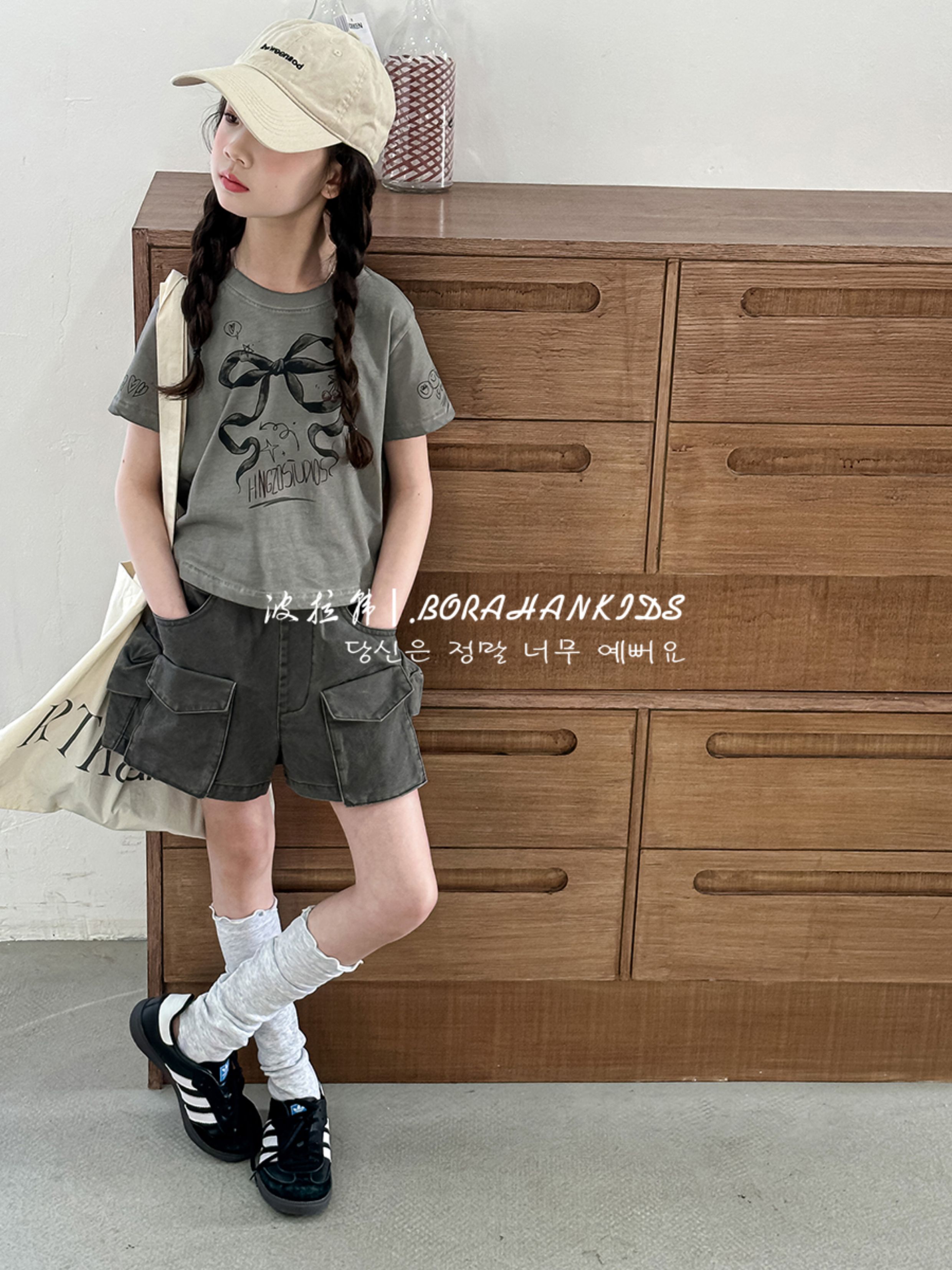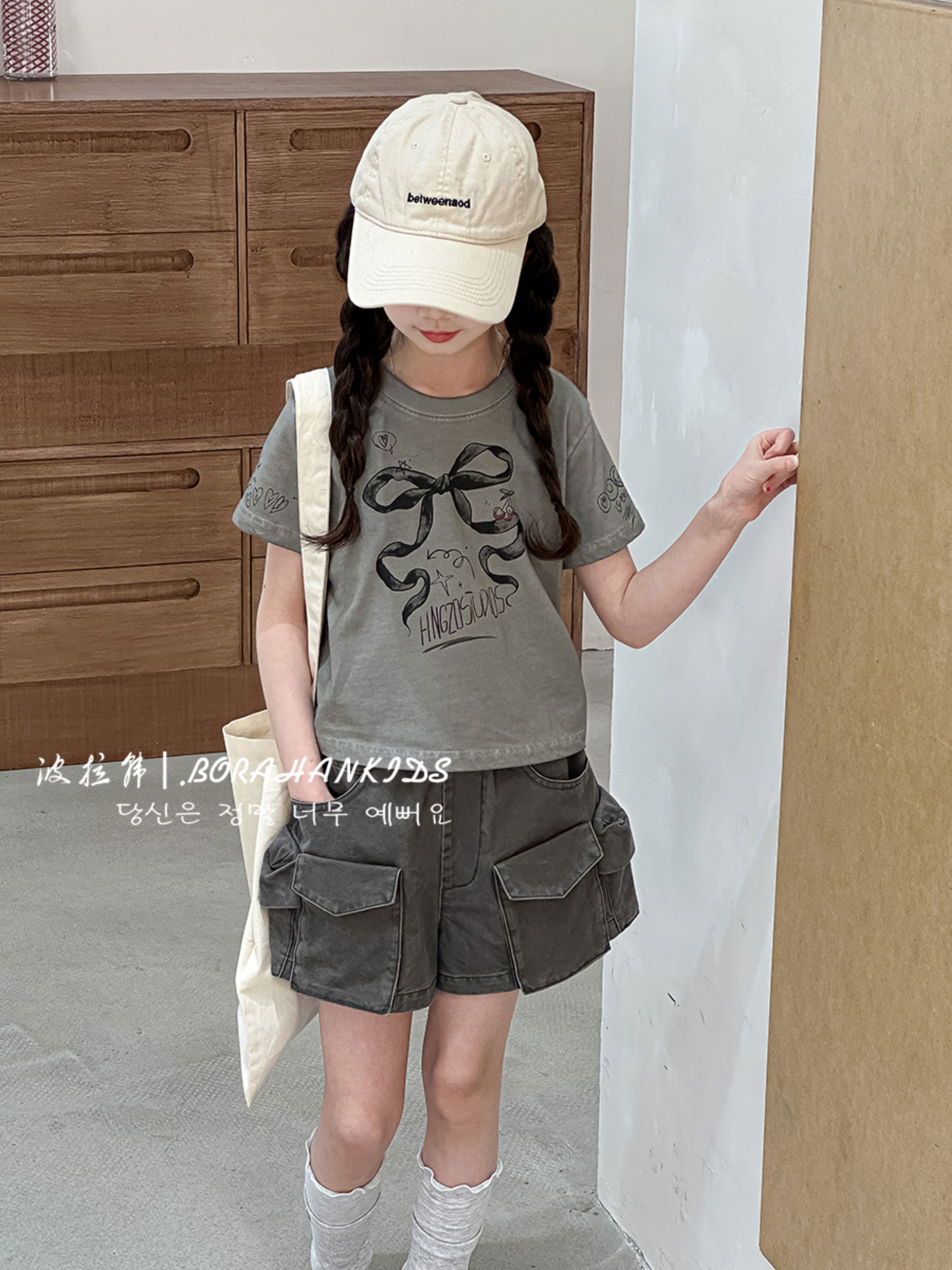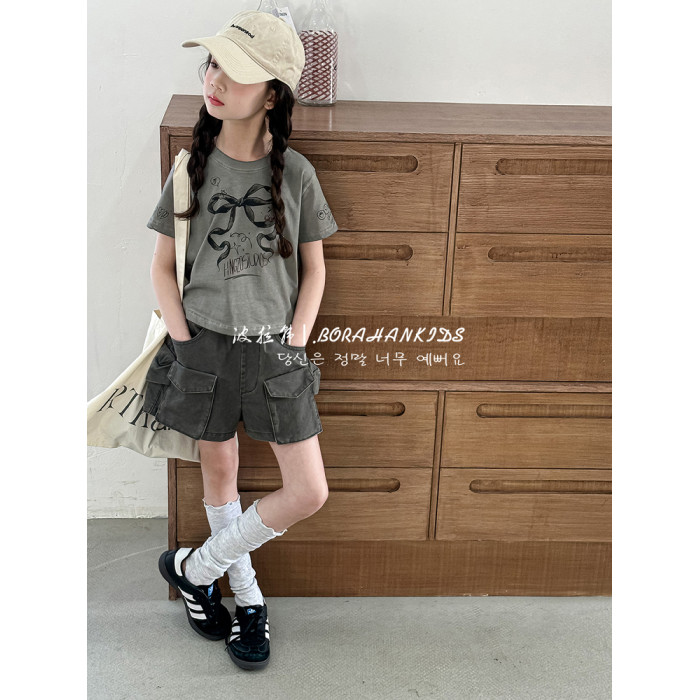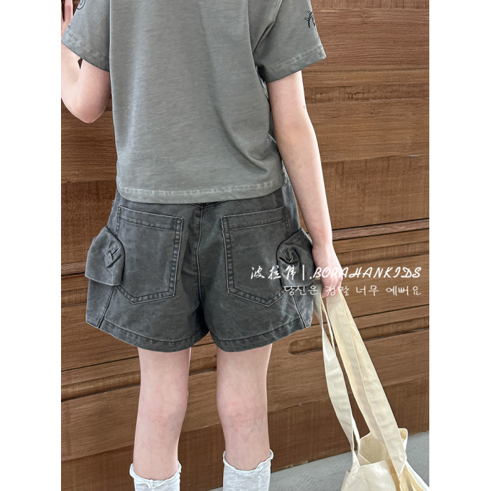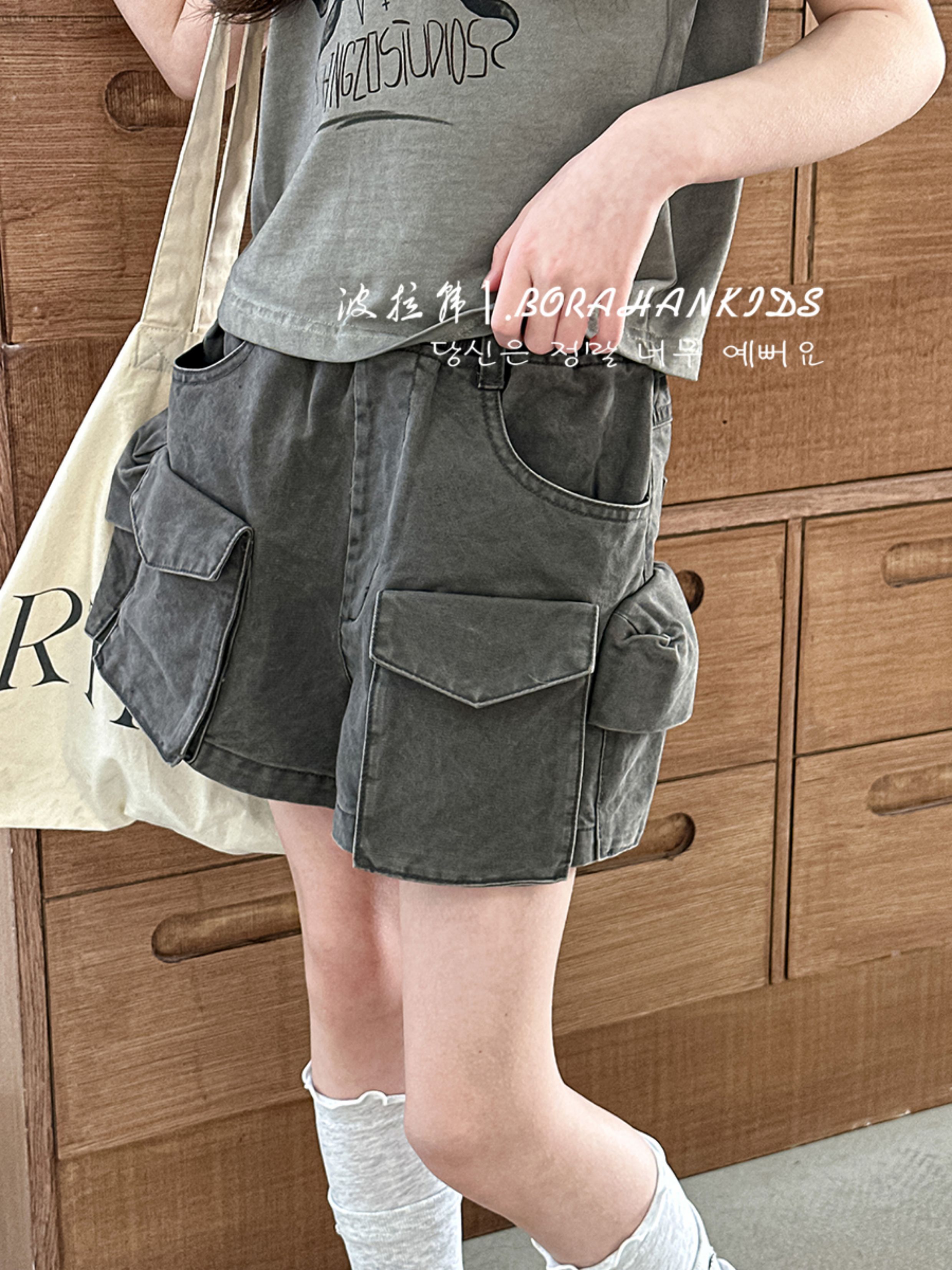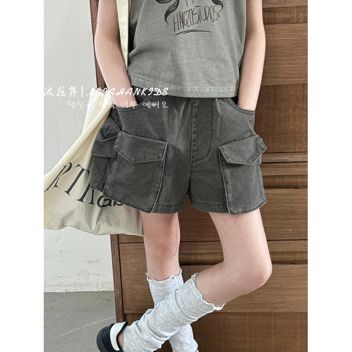 波拉韓女童短褲2025新款兒童牛仔熱褲小女孩時髦工裝褲洋氣五分褲