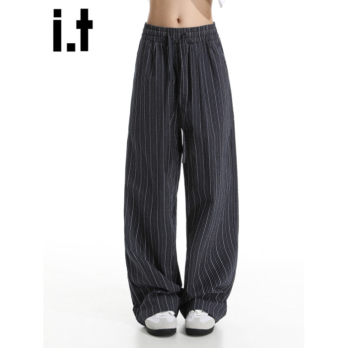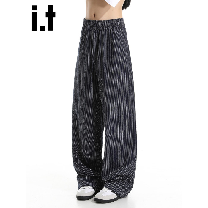 it :5cm/FIVECM美式松緊腰條紋休閒濶腿褲男女2025夏薄款寬松長褲