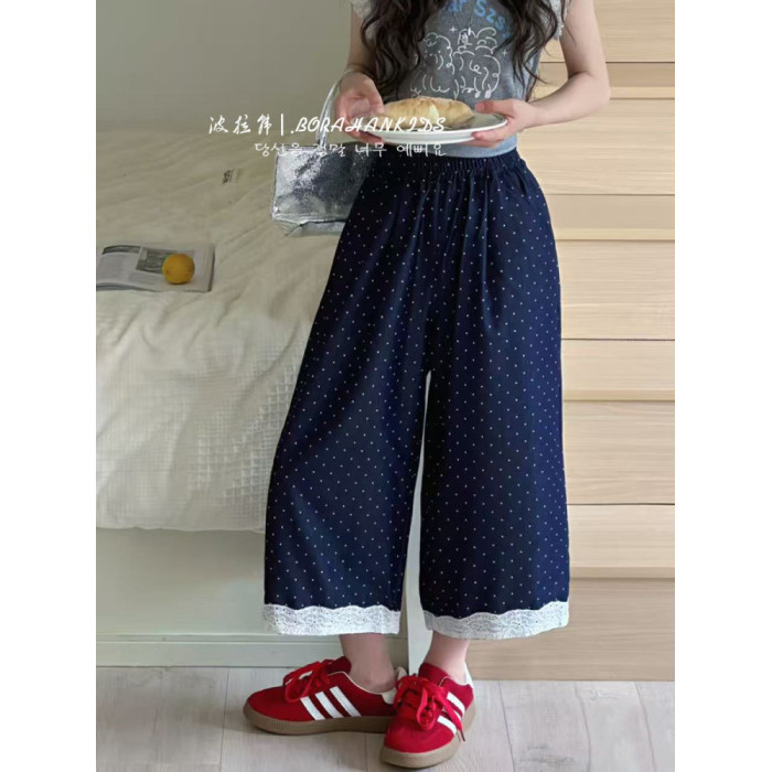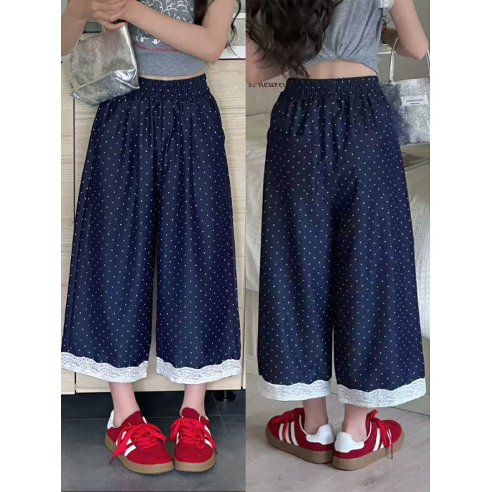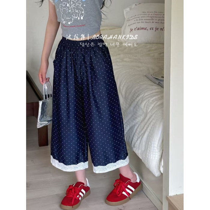 波拉韓女童花邊天絲牛仔褲夏季2025兒童超薄九分褲中大童休閒褲