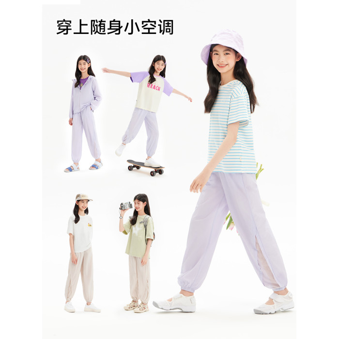 Kiya女童防蚊褲夏裝2025新款兒童裝褲子大童夏季輕薄透氣運動長褲
