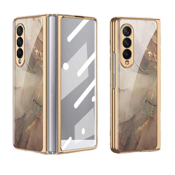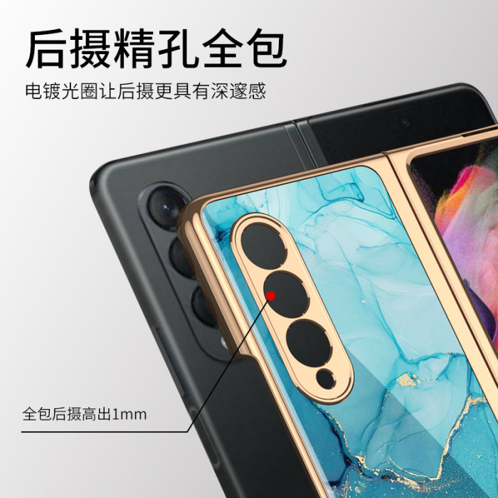 新款適用三星zfold3手機殼電鍍玻璃殼膜w22摺疊螢幕保護套防摔外殼
