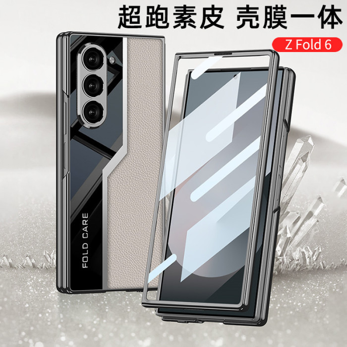 適用三星GalaxyZ Fold6手機殼電鍍超跑個性素皮保護套防摔殼