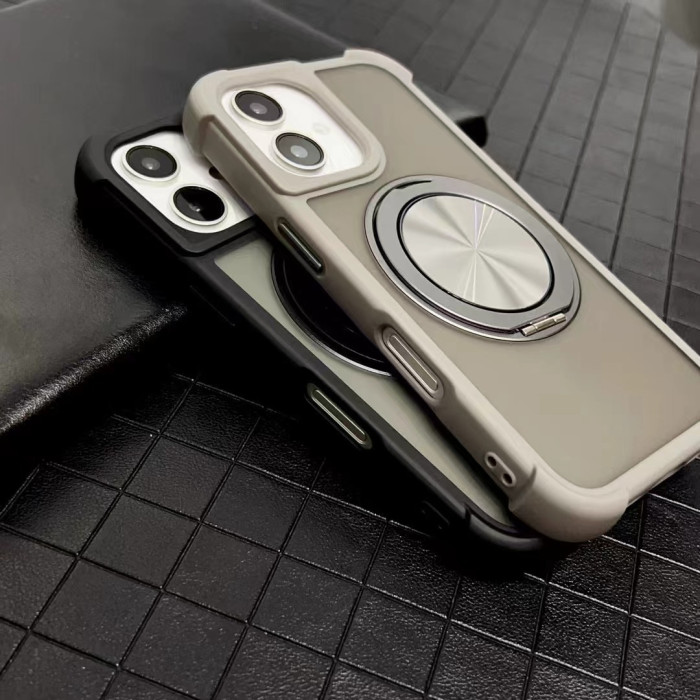適用iPhone16pro旋轉支架手機殼蘋果15磨砂膚感支點超強磁吸保護