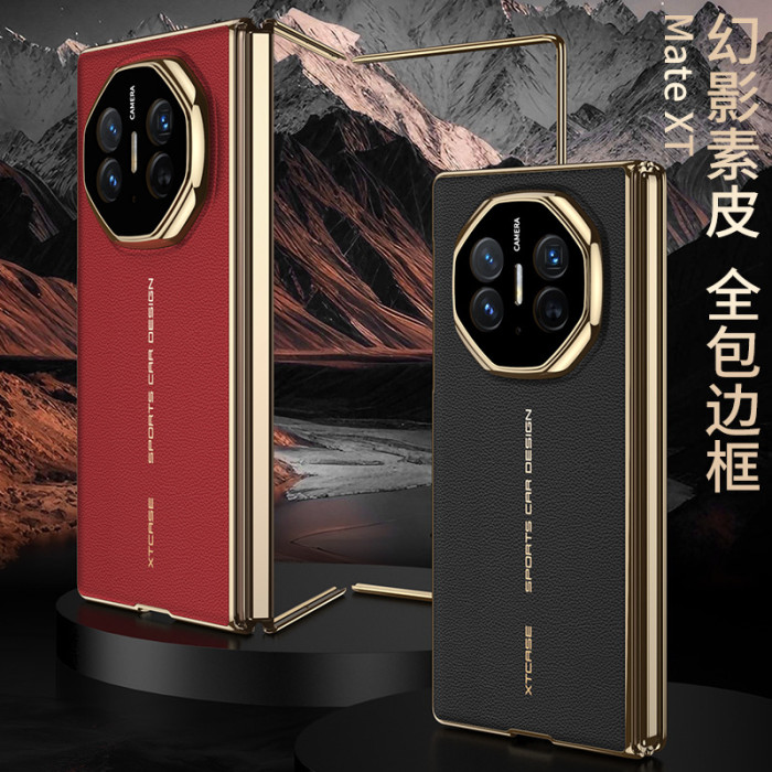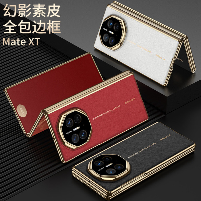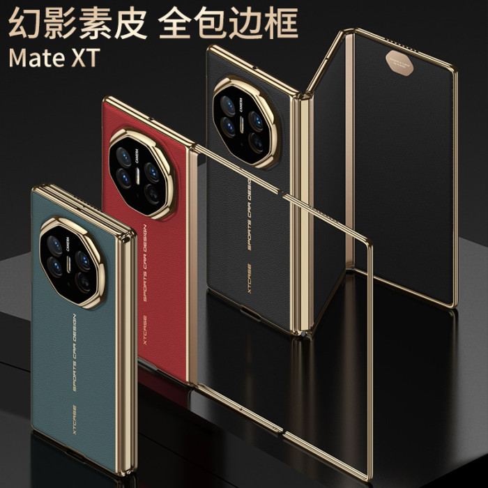 適用華爲MateXT摺疊螢幕手機殼全包邊框非凡大師電鍍素皮翻蓋保護套