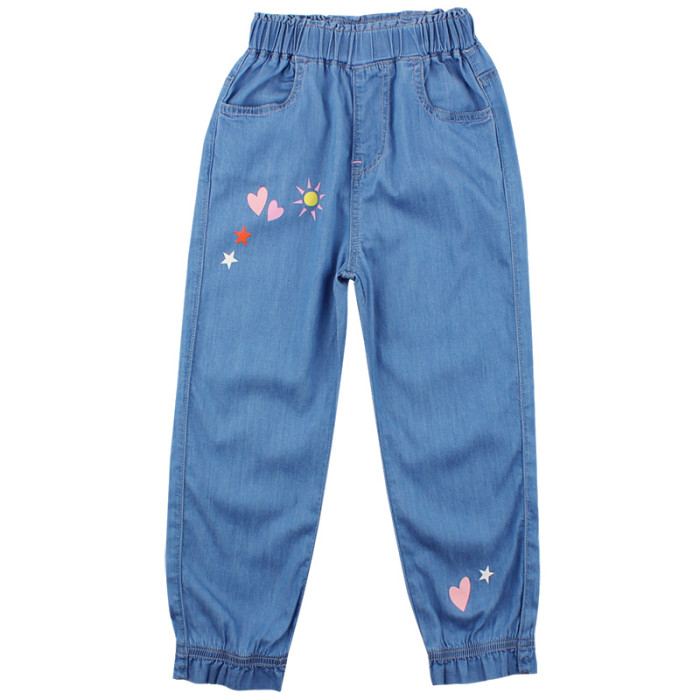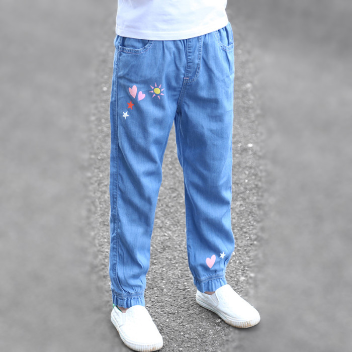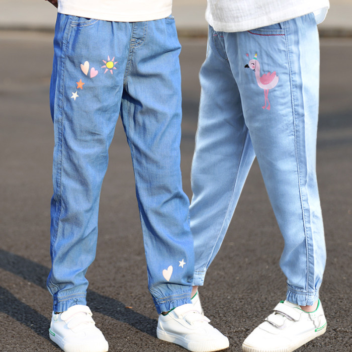 女童褲子夏季薄款兒童牛仔褲小女孩天絲長褲洋氣防蚊褲春秋寬松
