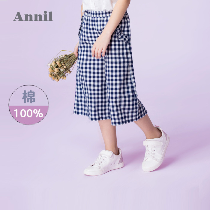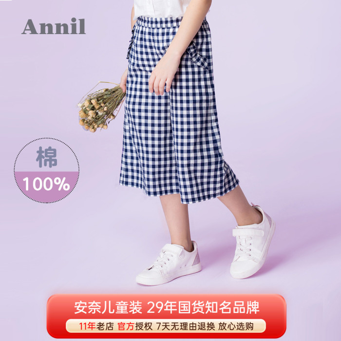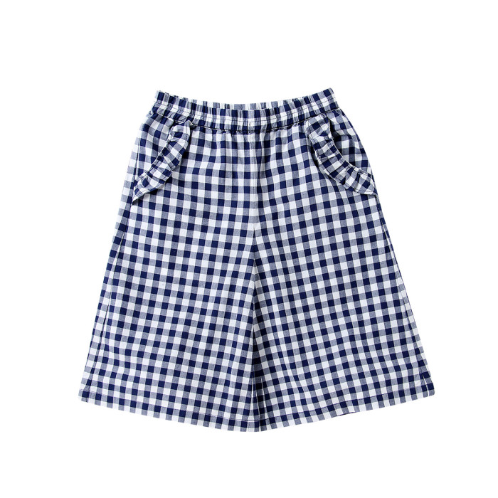 安奈兒女童純棉薄七分褲子2025夏季款格子寬松濶腿休閒棉質洋氣