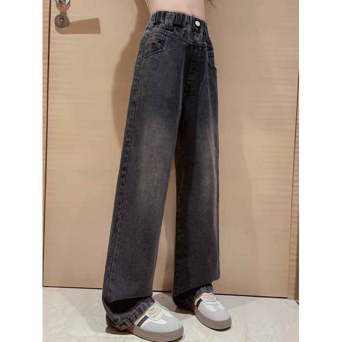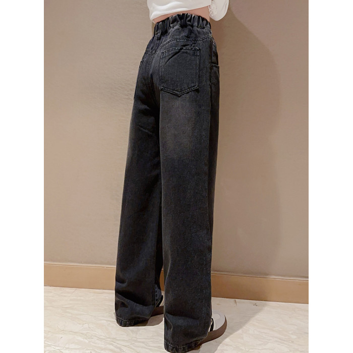 女童黑色直筒褲牛仔褲夏季新款兒童休閒褲女大童女孩夏裝洋氣褲子