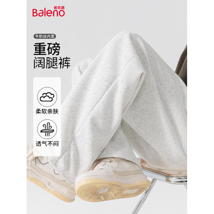 班尼路灰色褲子男款秋季寬松運動衛褲男士重磅休閒褲直筒濶腿男褲