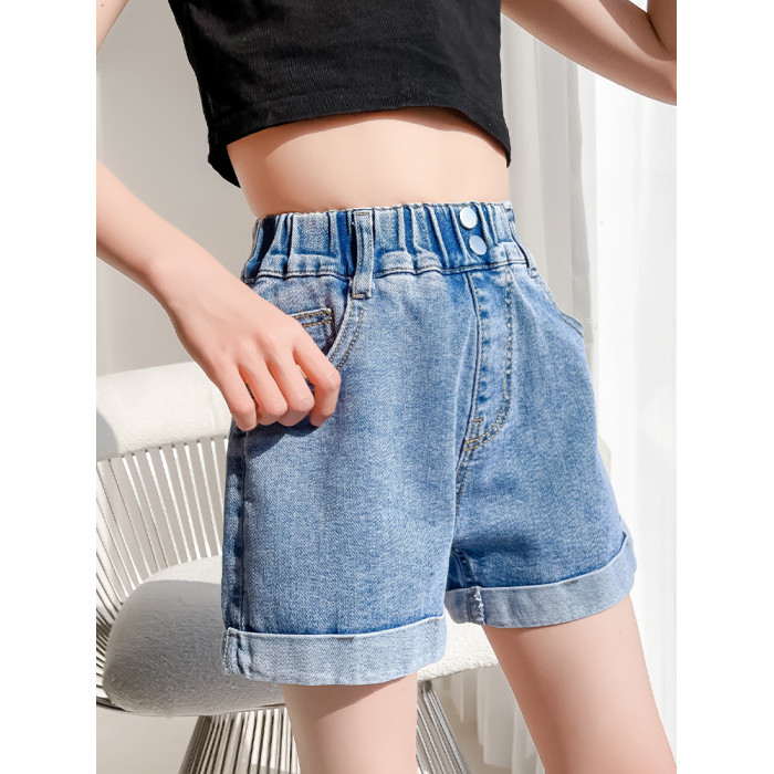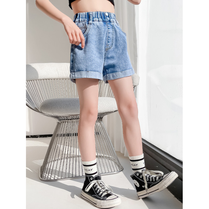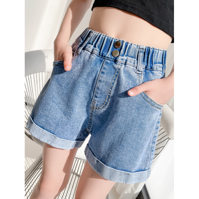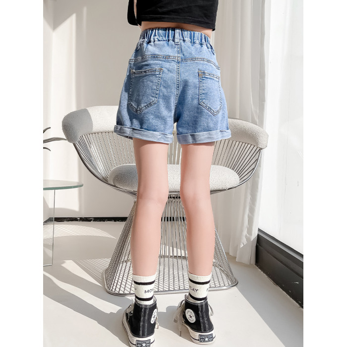 女童褲子2024新款大童女孩夏季薄款百搭時尚洋氣兒童外穿牛仔短褲
