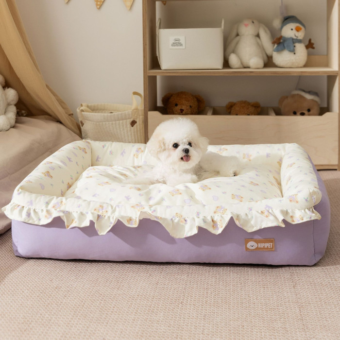 25年新款秋季花邊保暖方窩靠枕小型犬貓窩泰迪狗床狗墊子寵物狗窩