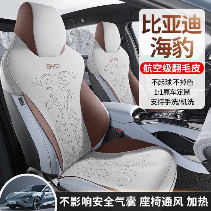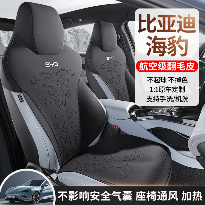 適用於比亞迪海豹汽車座椅墊航空級翻毛皮半包四季通用汽車坐墊