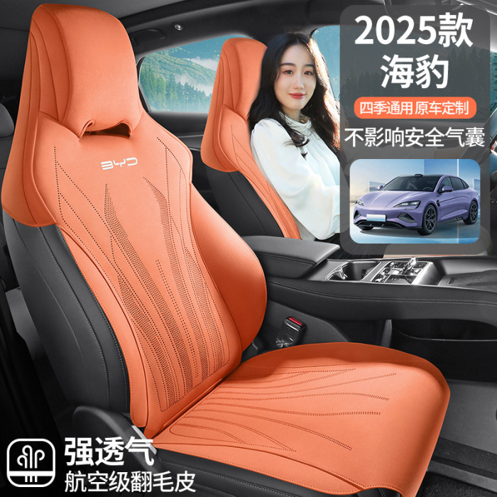 適用於2025款比亞迪海豹專用汽車坐墊座套翻毛皮通風馬鞍墊座套