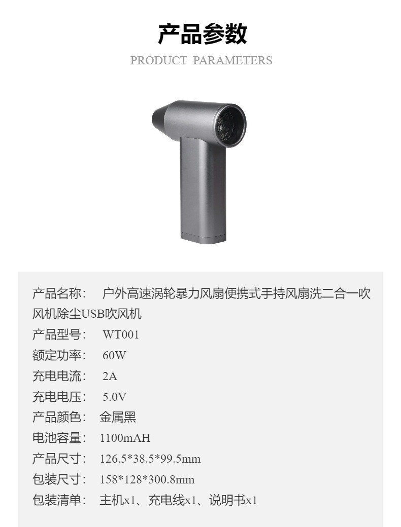 新款暴力風扇強力渦輪除塵高速吹塵器充電續航禮品