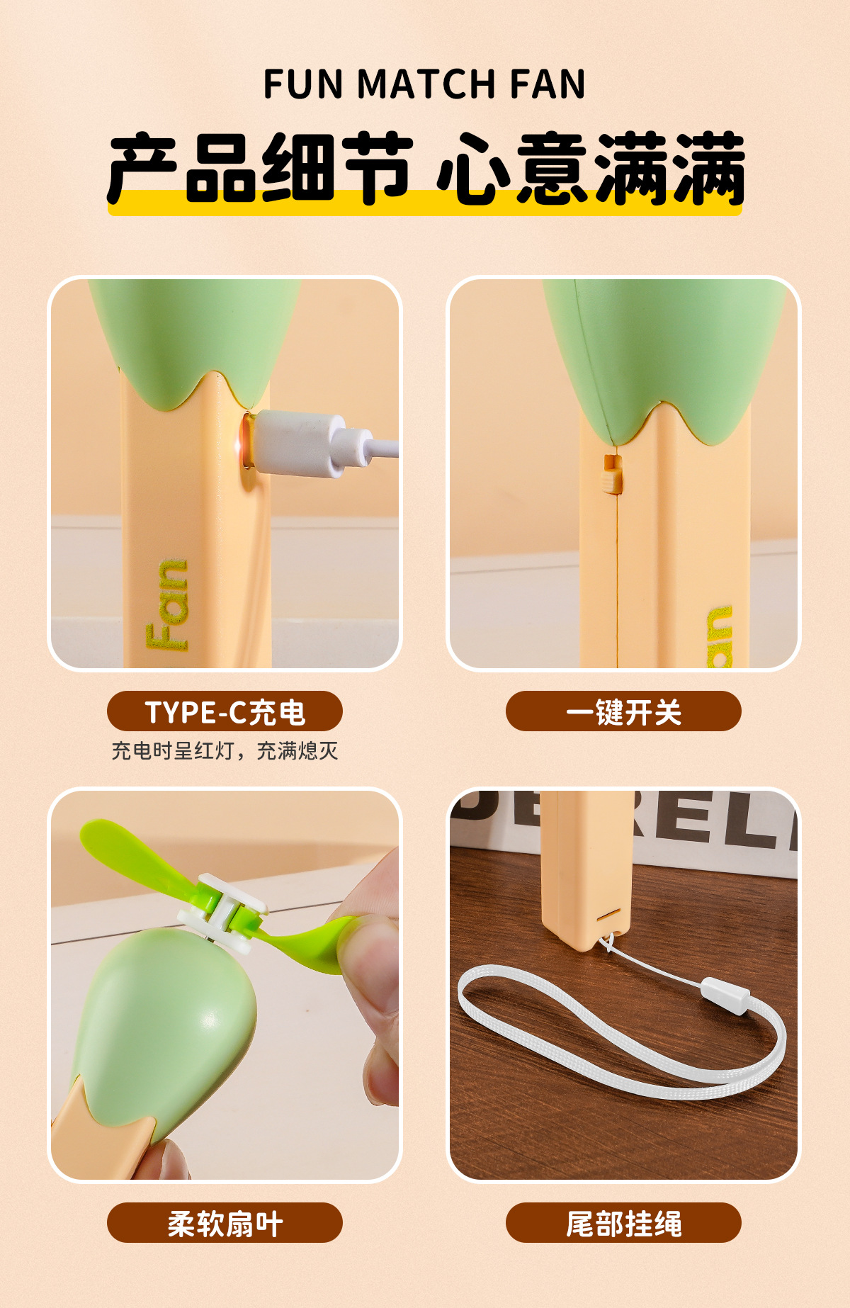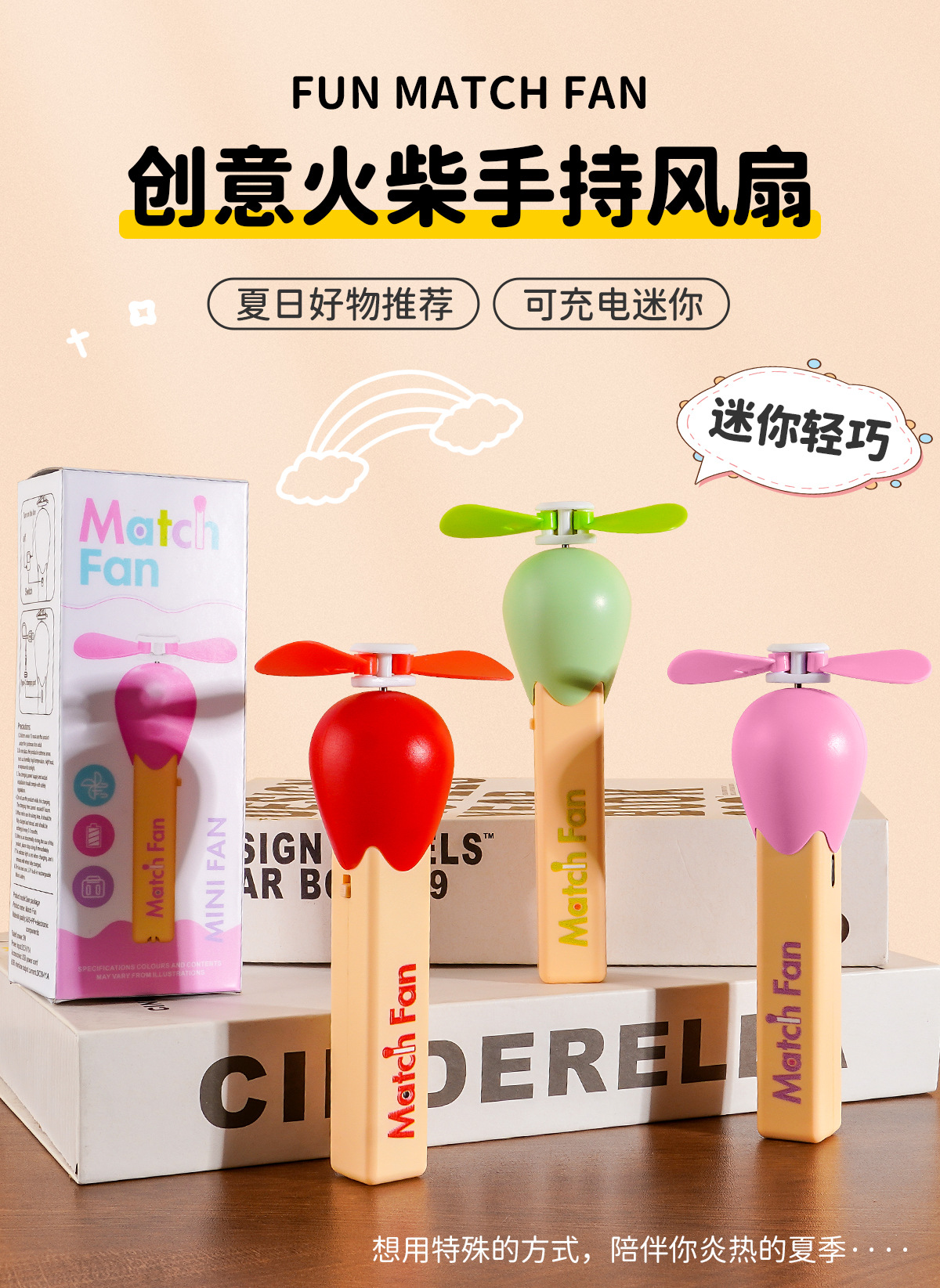 火柴手持小風扇小型迷你靜音學生usb可攜式卡通兒童手扇夏季充電款