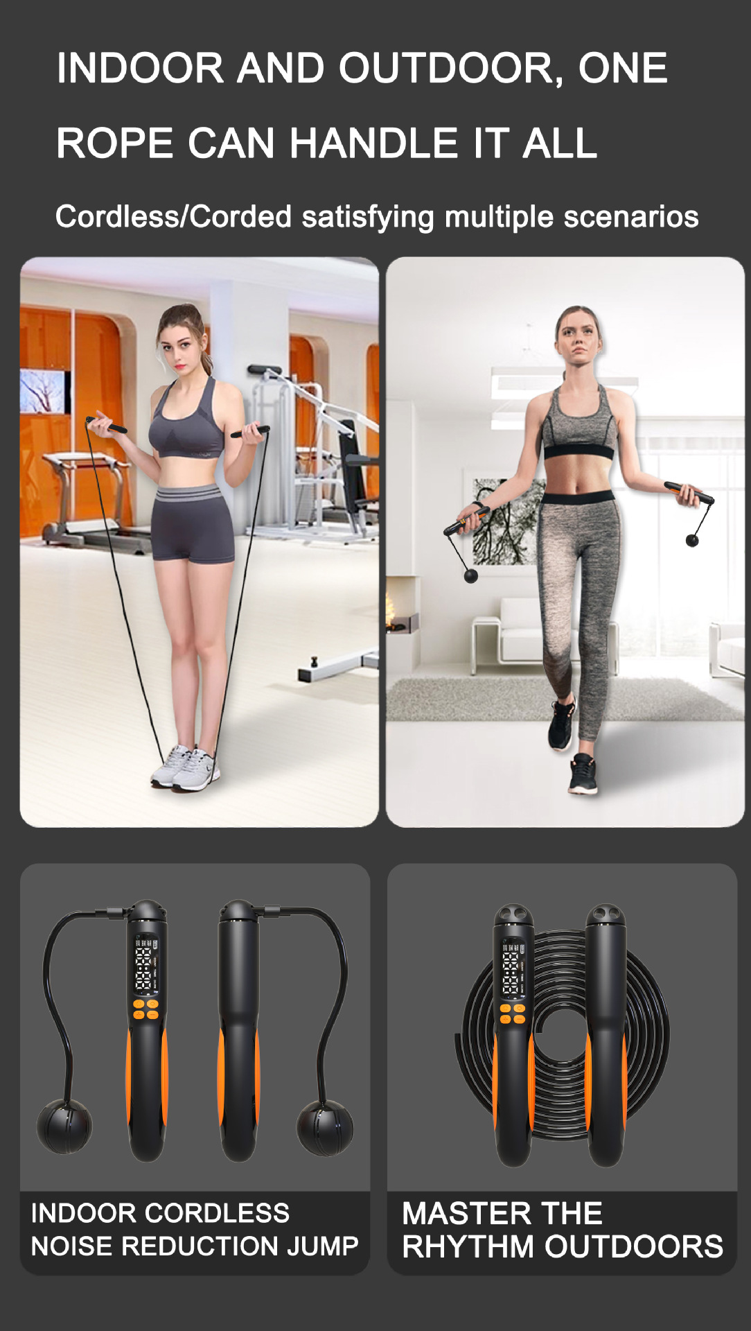 寅火智能可充電計數跳繩負重加重球健身減肥專用跳繩