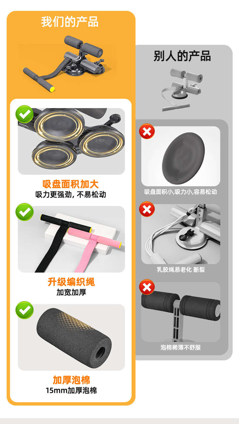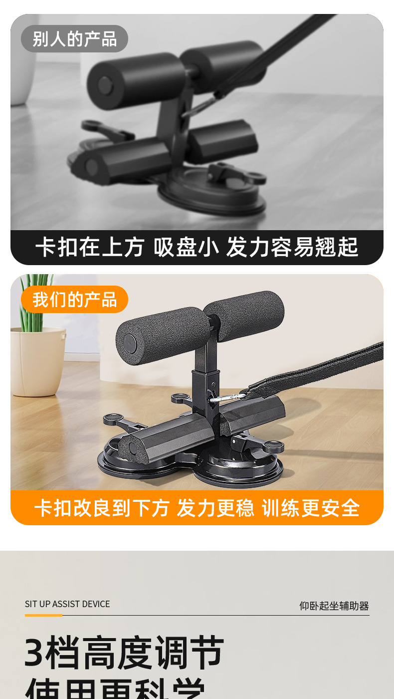 新款仰臥起坐輔助器壓腳卷腹器帶提繩美腰收腰三吸盤運動健身器材