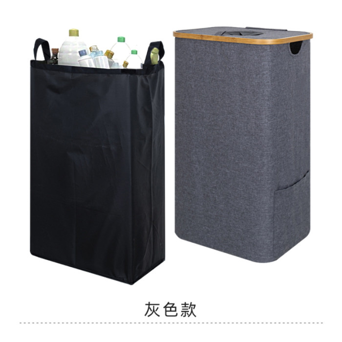 迴收瓶收納籃竹製分類收納筐飲料瓶迴收籃收納筐可折曡有內袋