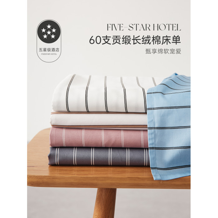 五星級酒店60支長絨棉純棉床單單件北歐極簡風質感條紋單雙人被單