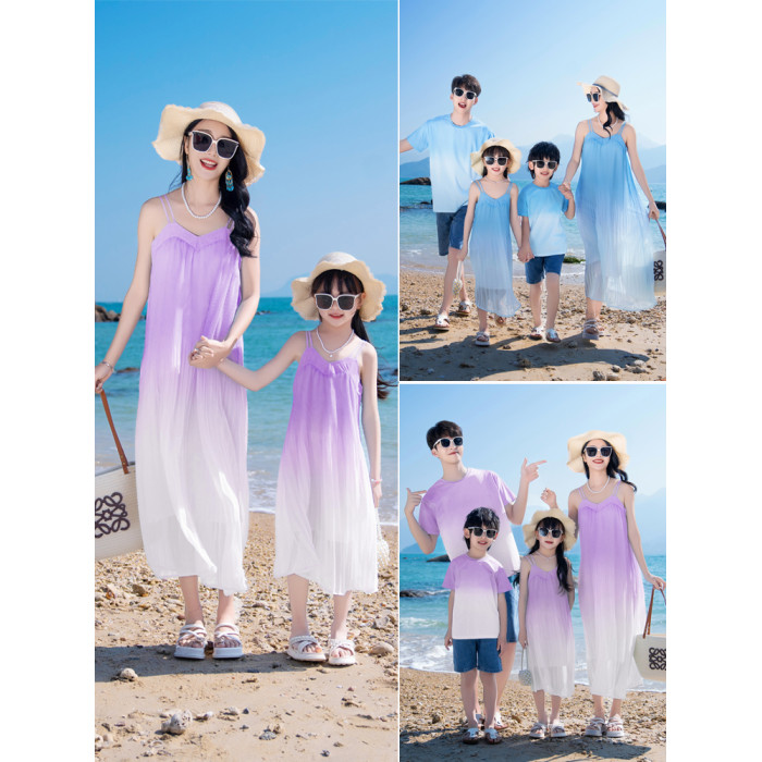 親子裝夏季海南島旅遊渡假三亞沙灘裙泰國海邊拍照超仙穿搭連衣裙
