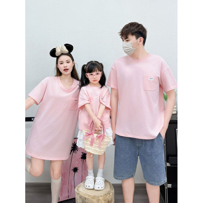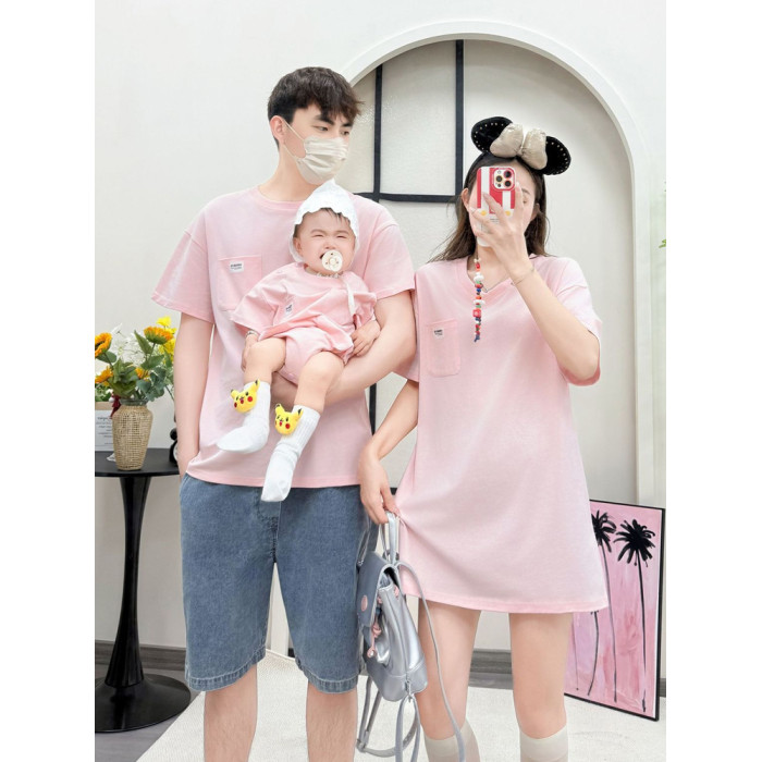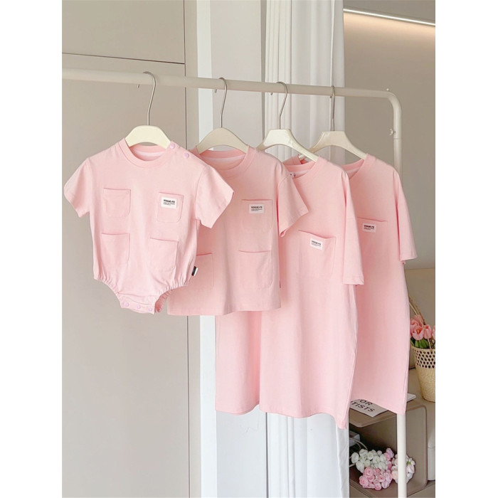 粉色親子裝2025夏裝新款短袖t恤一家三口四口小月齡母子母女裝潮