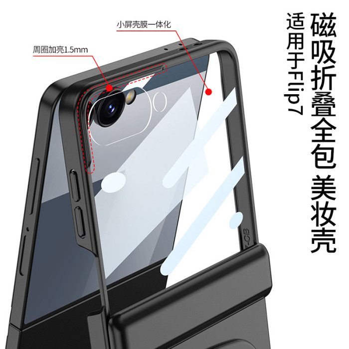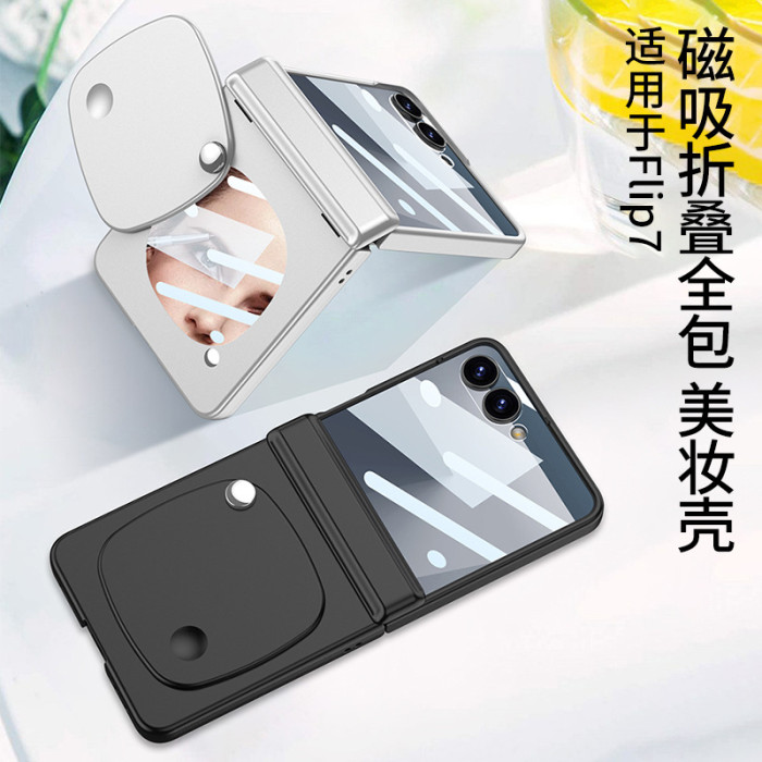 gkk適用三星z flip7摺疊螢幕手機殼超薄殼膜轉軸全包美妝鏡時尚磁吸