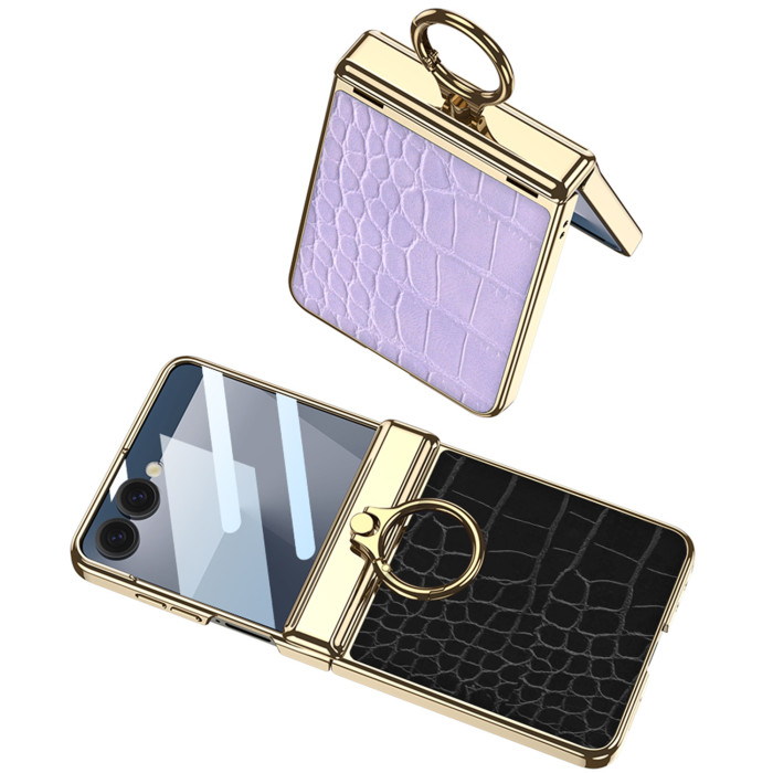 適用三星ZFlip7手機殼Flip7FE磁吸鉸鏈全包殼電鍍創意鱷紋魚皮套
