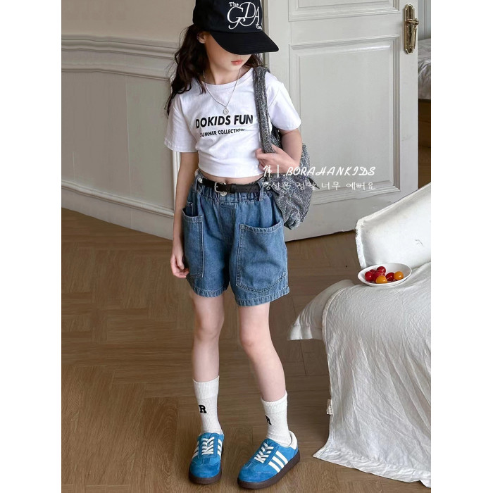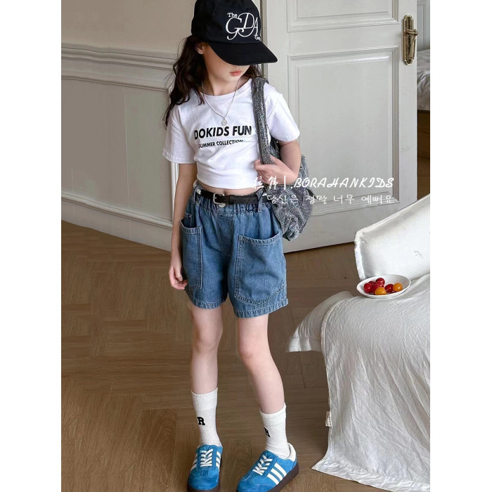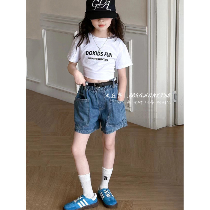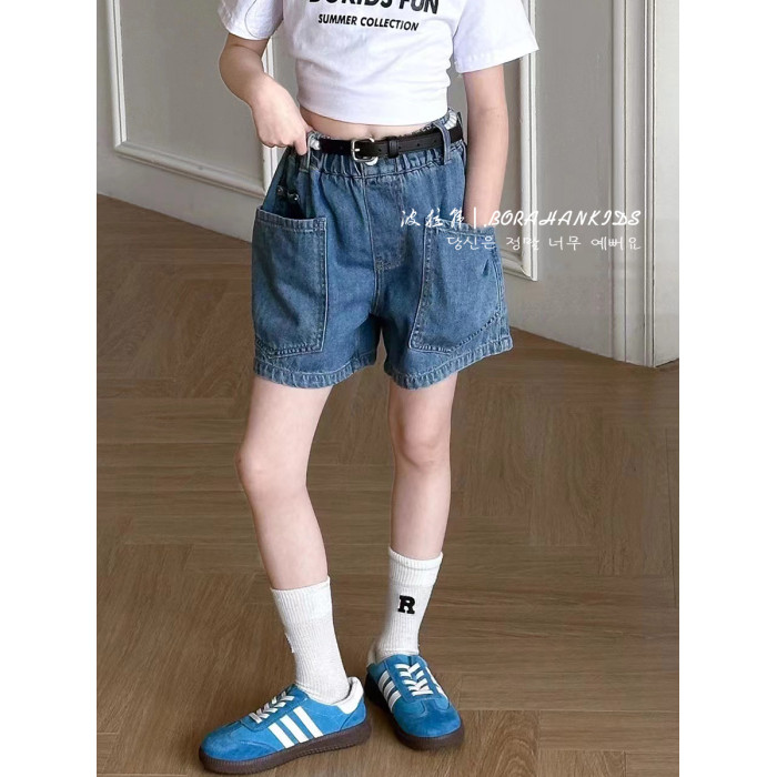 波拉韓童裝女童短褲薄款2025女孩夏天牛仔褲三分褲中大童休閒熱褲
