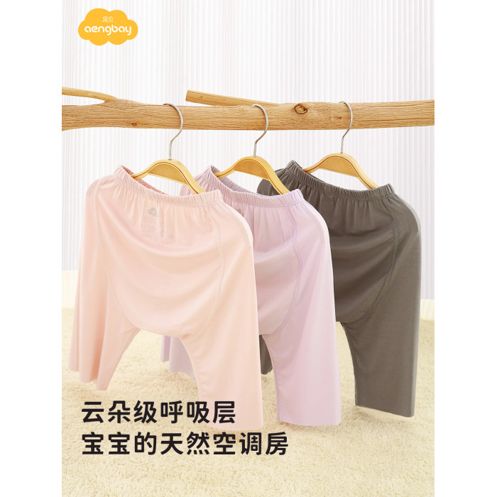 Aengbay嬰兒哈倫褲莫代爾夏季薄長褲大PP褲新生兒長褲寶寶防蚊褲
