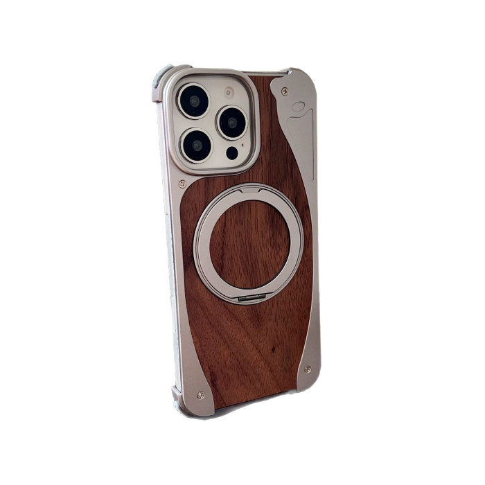 新款胡桃木適用蘋果16promax手機殼金屬旋轉支架15pro無邊框磁吸