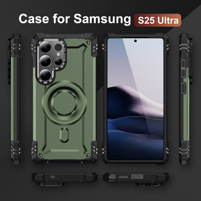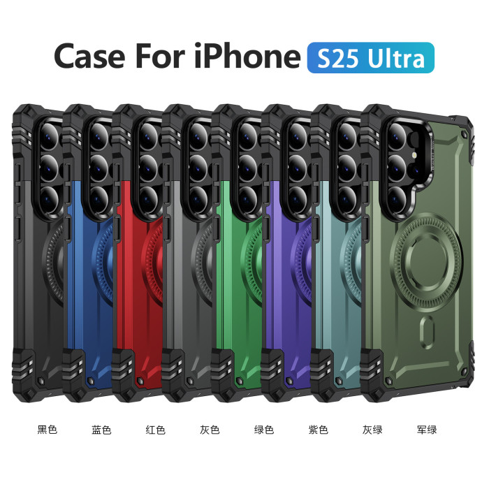 軍備盔甲適用三星S25Ultra磁吸手機殼A16鏡頭支架S24FE防摔保護套