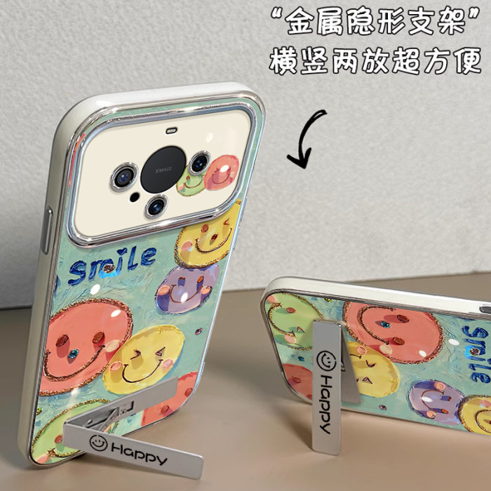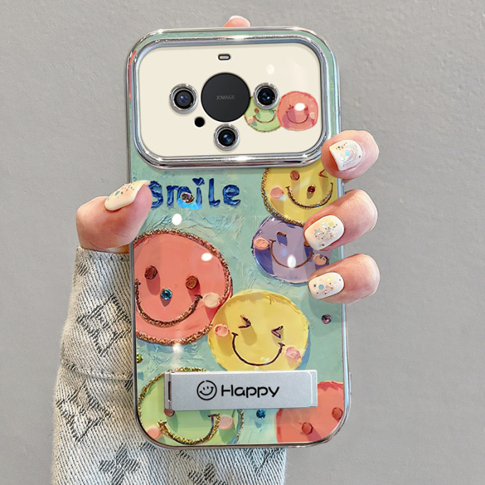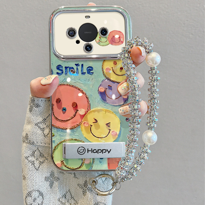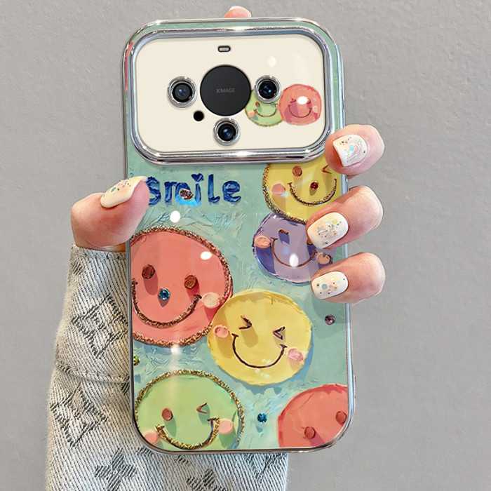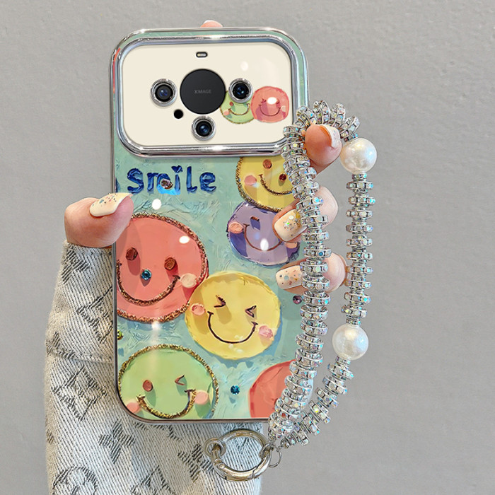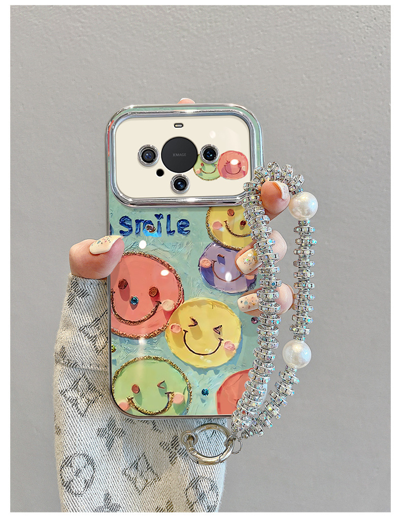 適用華爲mate60pro手機殼帶掛鏈50新款40防摔30矽膠油畫笑臉全包