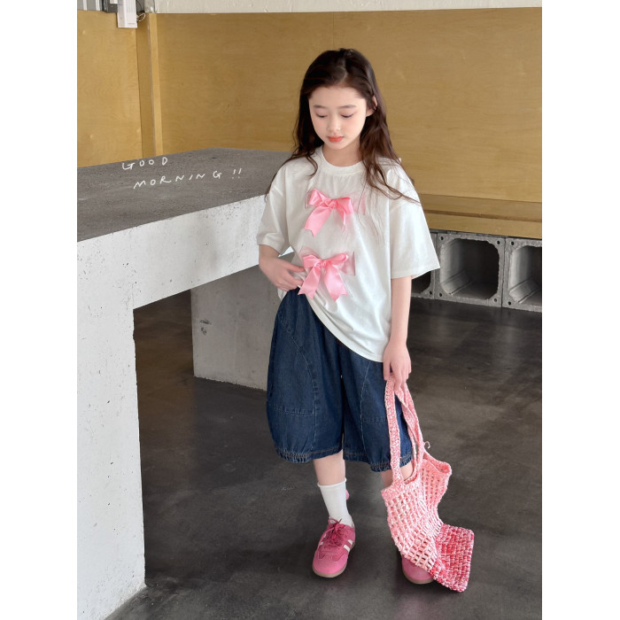 【五分褲】藍小爸童裝女童牛仔中褲夏季新款兒童時尚休閒百搭褲子