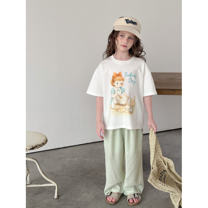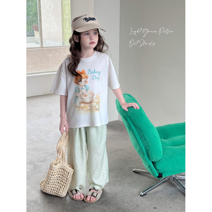 【波點褲】藍小爸童裝女童親子波點休閒褲夏季新款兒童直筒濶腿褲