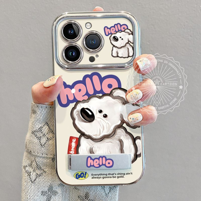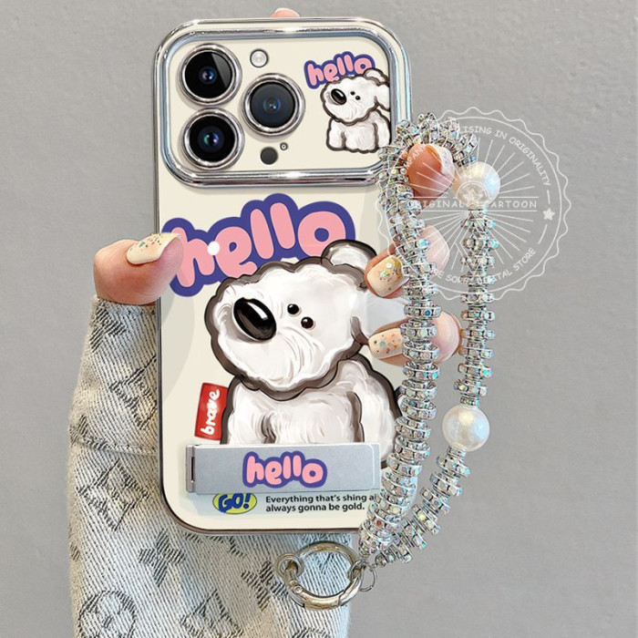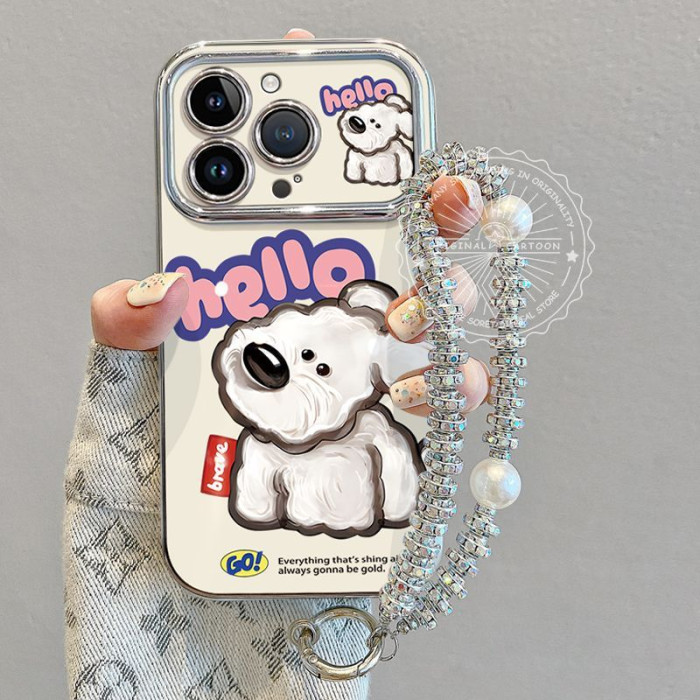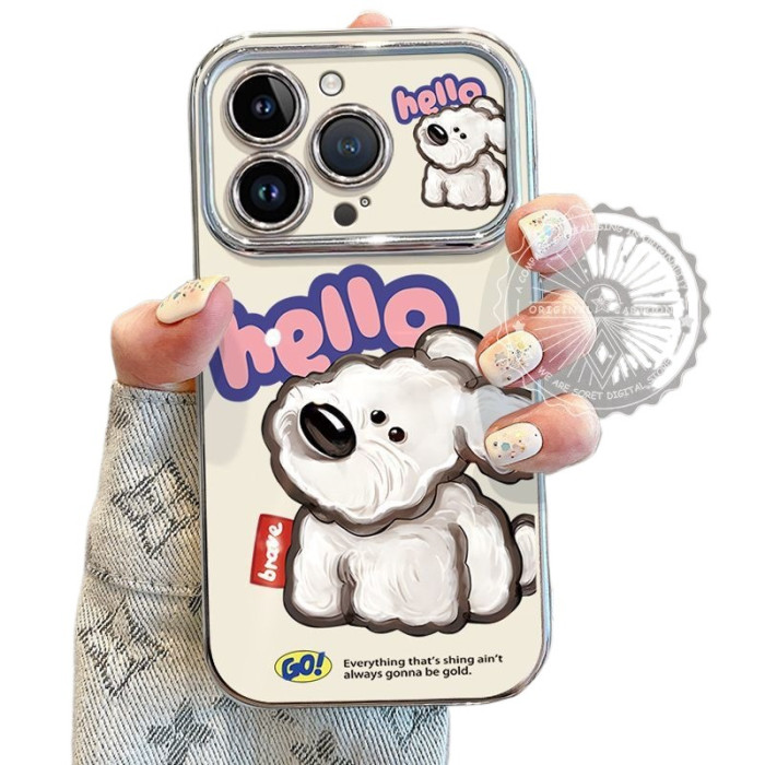 適用蘋果15pro手機殼高級時尚iphone14保護套13帶掛繩歪頭小狗