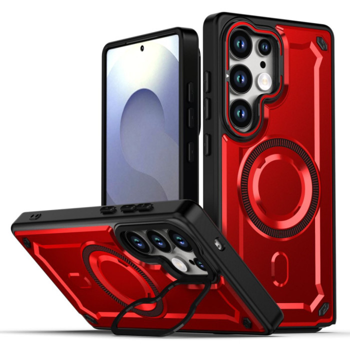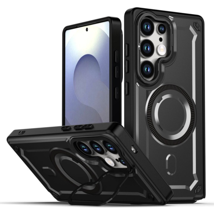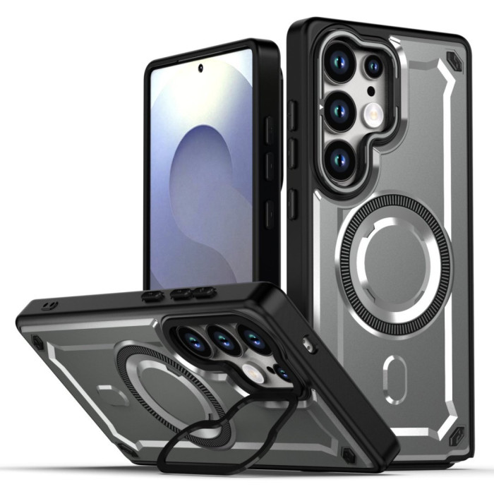 適用三星S25Ultra金甲磁吸手機殼S24Ultra支架A56防摔A36保護套