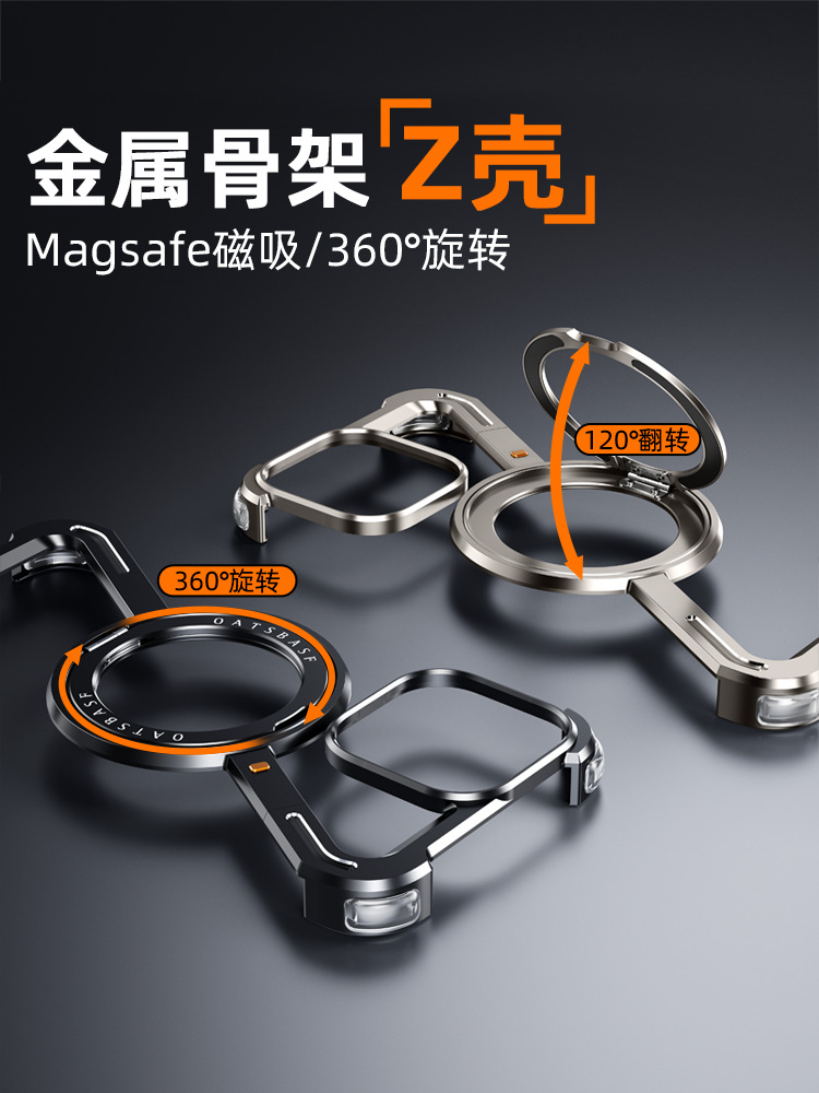 Z殼旋轉磁吸支架適用蘋果17promax手機殼金屬鏤空iphone16pro無邊