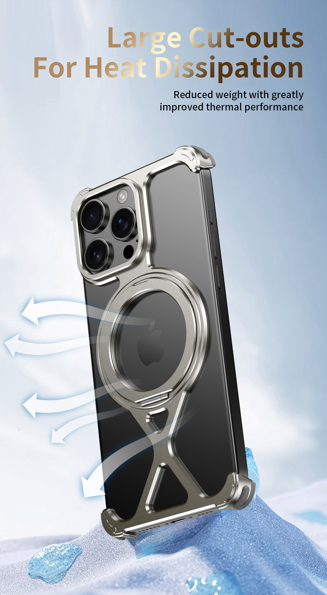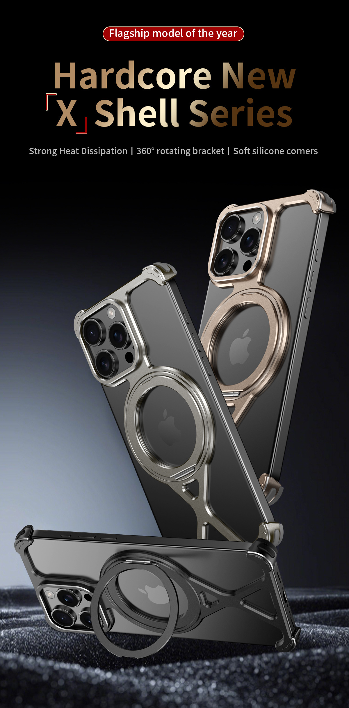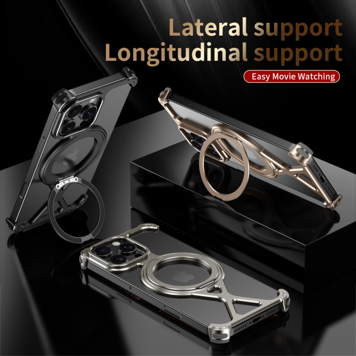 適用蘋果16promax旋轉磁吸支架手機殼散熱鋁合金iphone15pro